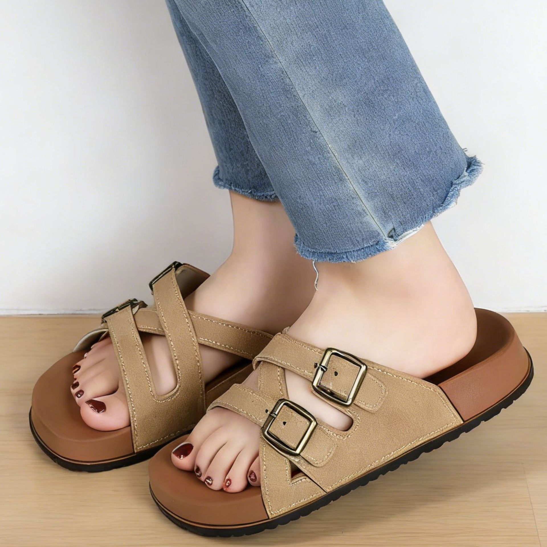 • 2518 더블 스트랩 크로스 샌들 - 카키