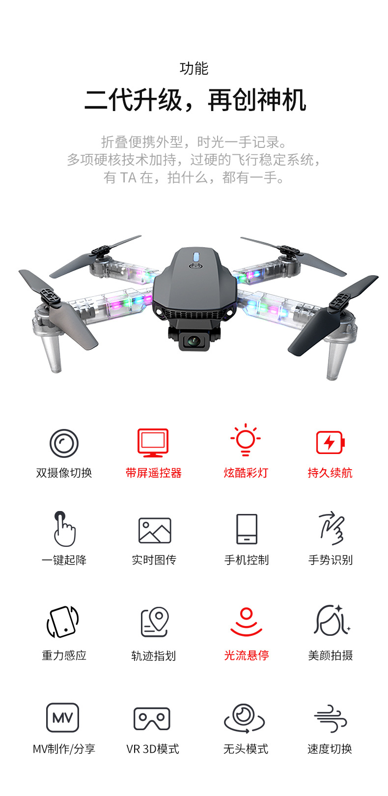 대외 무역 E88D 드론 조명 고화질 듀얼 카메라 4축 광학 흐름 호버링 항공기 어린이 원격 제어 항공기