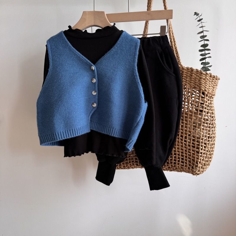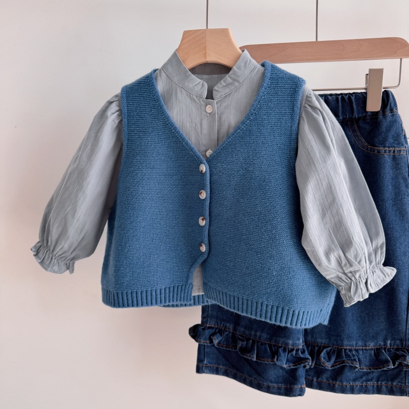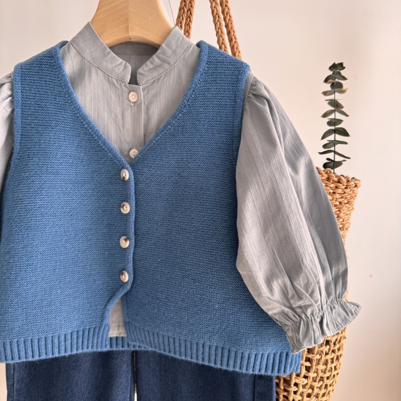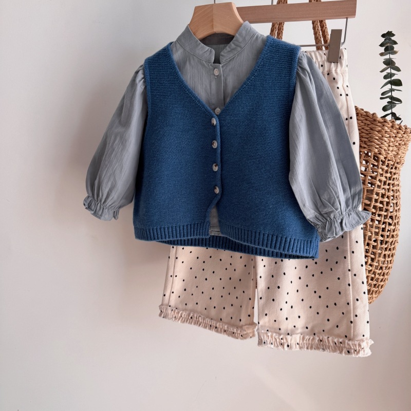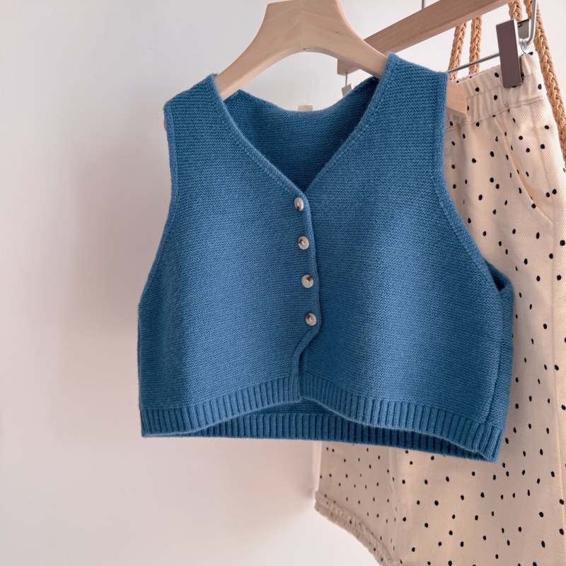 Hanli Korean Style 2025 봄, 가을 조끼 소녀 v 넥 니트 카디건 민소매 스웨터 조끼 캐주얼 니트 탑스토어 가기