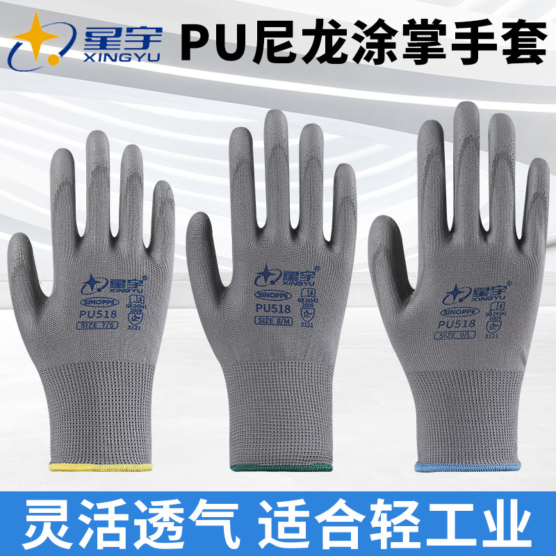 정품 Xingyu 노동 보호 장갑 PU518 정전기 방지 통기성 고무 코팅 손바닥 노동 작업 여름 장갑