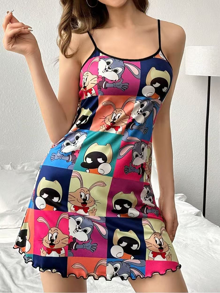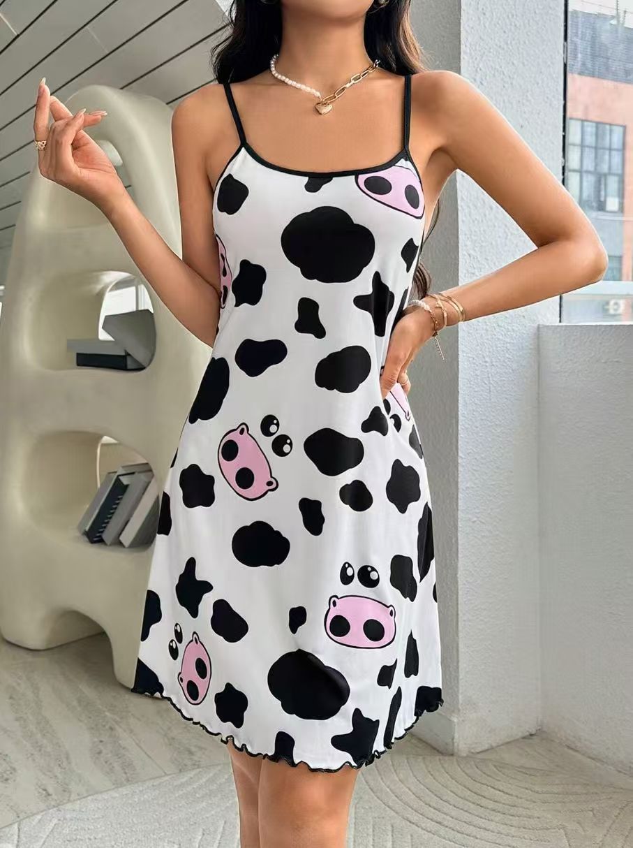 국경 간 유럽과 미국 아마존 대외 무역 Xiyin 여름 새 스타일 잠옷 여성용 소 프린트 서스펜더 잠옷 새로운 스타일