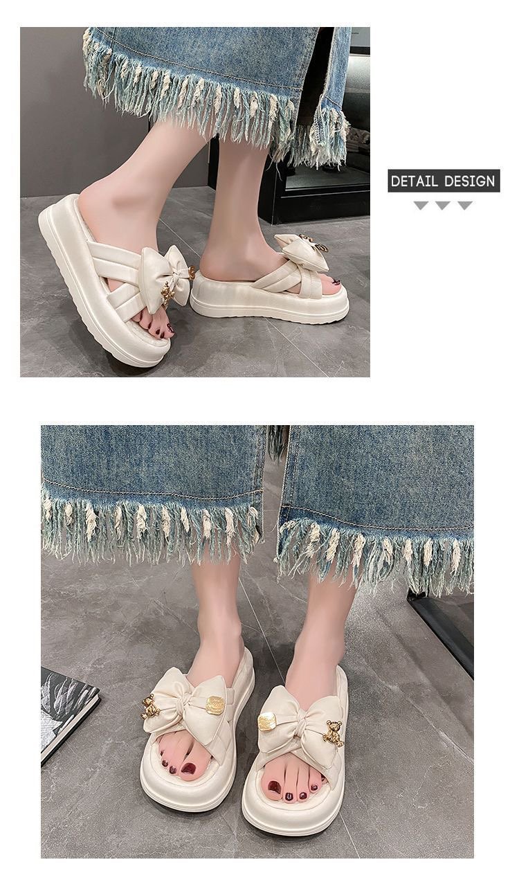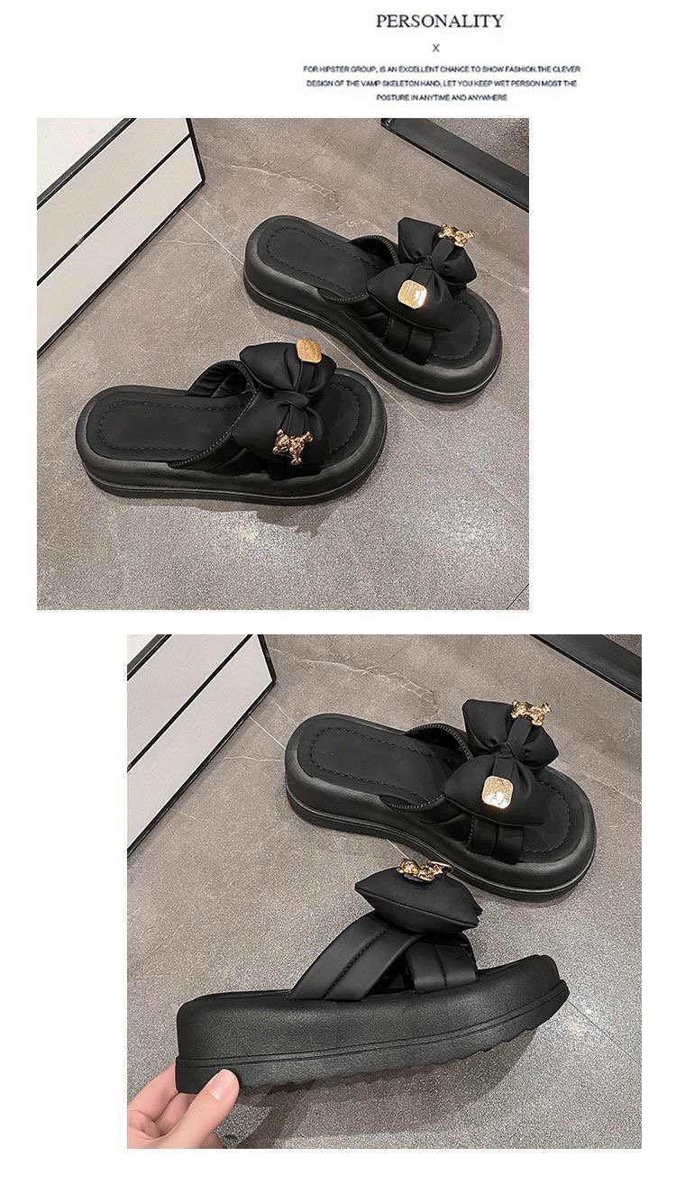여성용 겉옷용 리본 슬리퍼 2025 새로운 여름 스타일 슈퍼 핫 미끄럼 방지 두꺼운 밑창 고급 부드러운 밑창 샌들