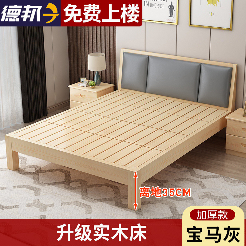 단단한 나무 침대 1.5m 소나무 더블 침대 현대 미니멀리스트 싱글 침대 경제적 인 간단한 가구 침대 1.2m 침대 프레임스토어 가기
