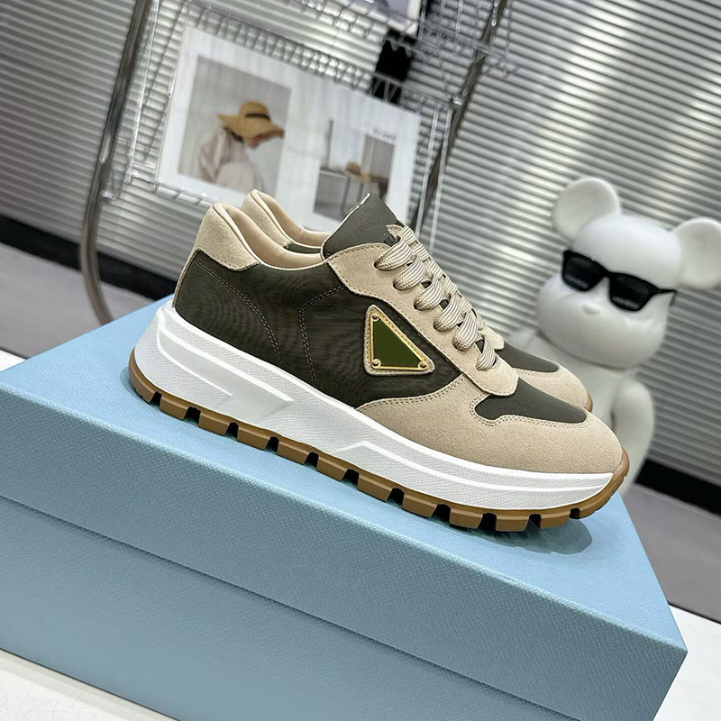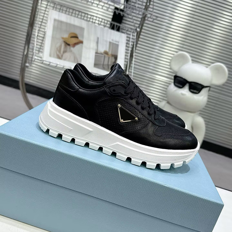 Spot 국경 간 대외 무역 새로운 P 홈 운동화 삼각형 로고 캐주얼하고 편안한 정품 가죽 레이스 업 로우 탑 기어 두꺼운 밑창 남성용스토어 가기