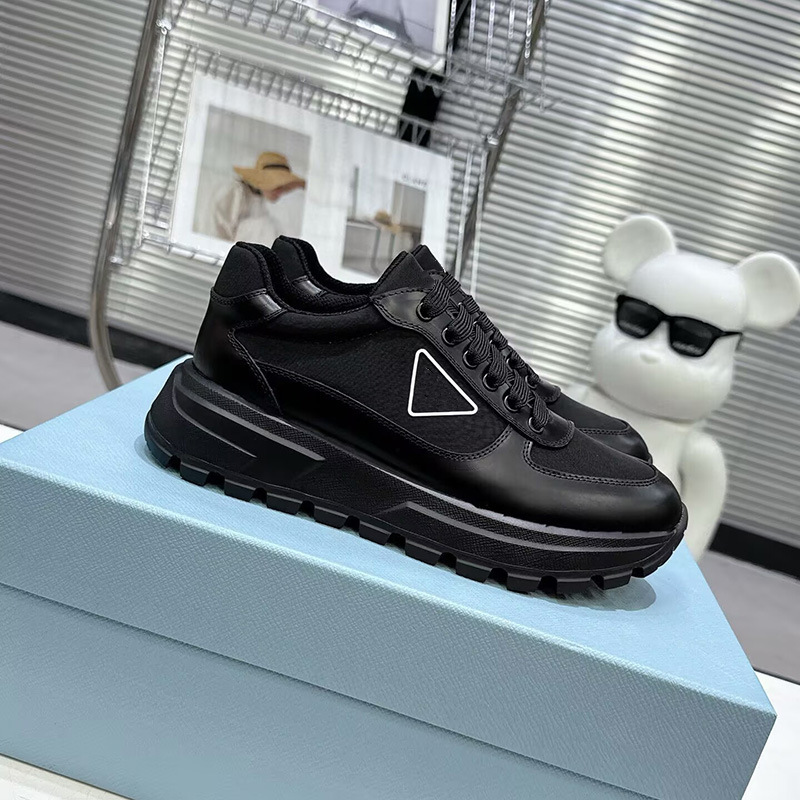 Spot 국경 간 대외 무역 새로운 P 홈 운동화 삼각형 로고 캐주얼하고 편안한 정품 가죽 레이스 업 로우 탑 기어 두꺼운 밑창 남성용
