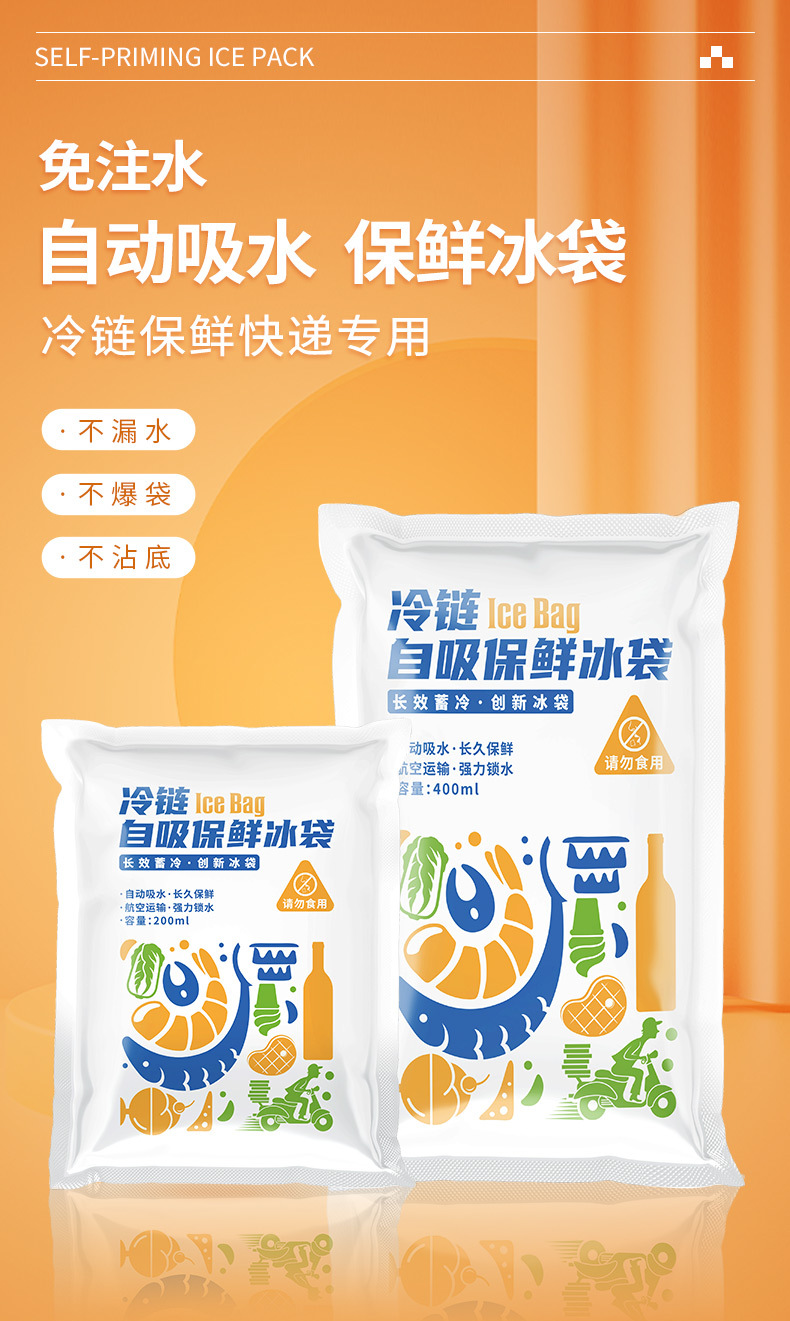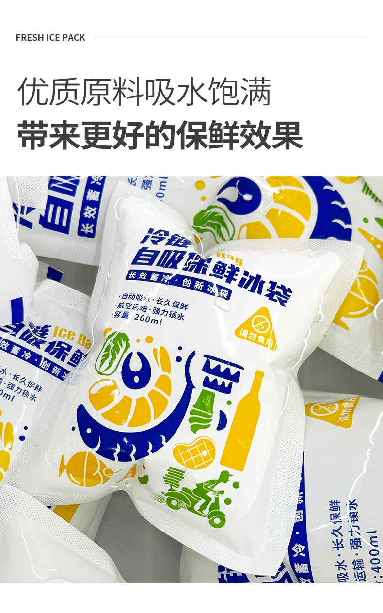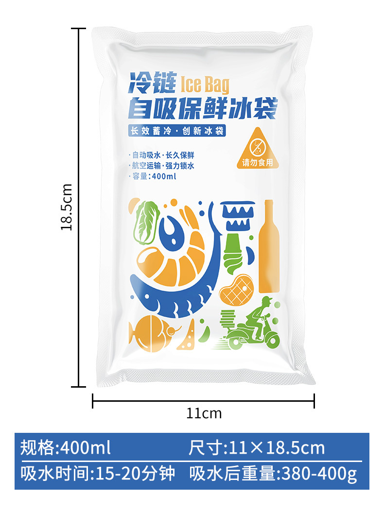 두꺼운 자체 흡수식 무급수 아이스백, 과일 보존 젤 아이스백, 익스프레스 테이크아웃 냉장 운송 아이스팩