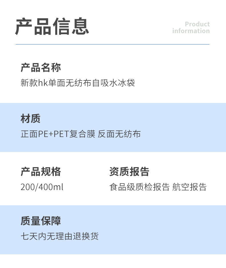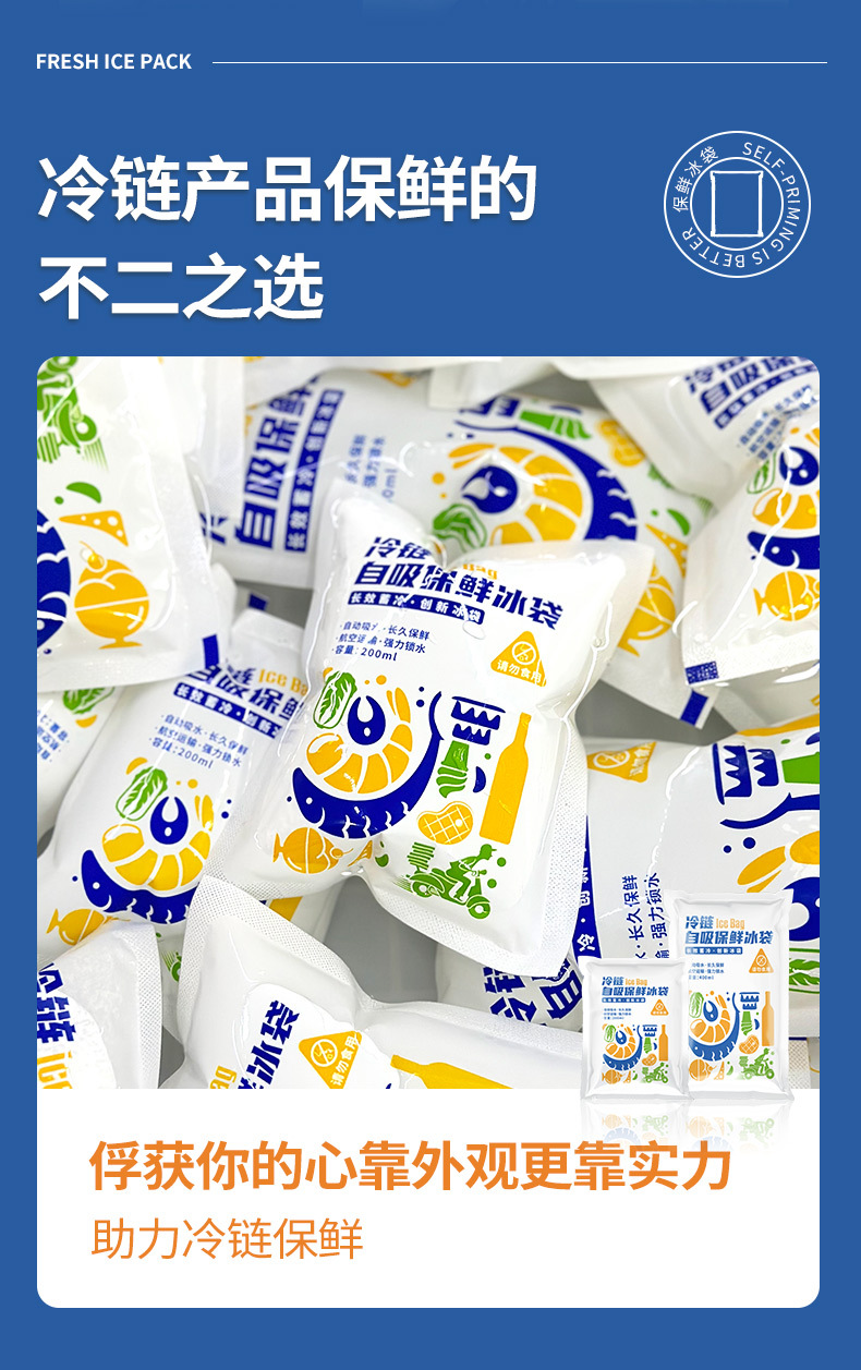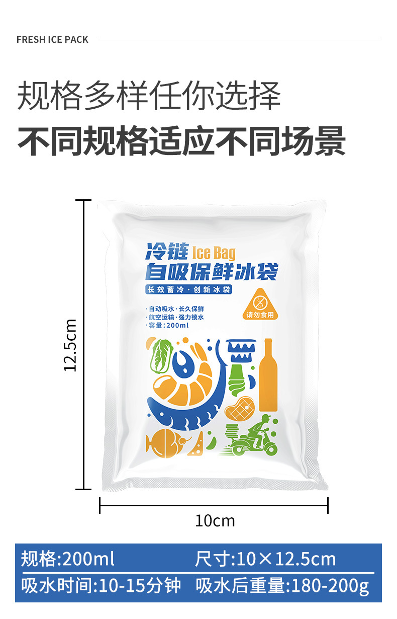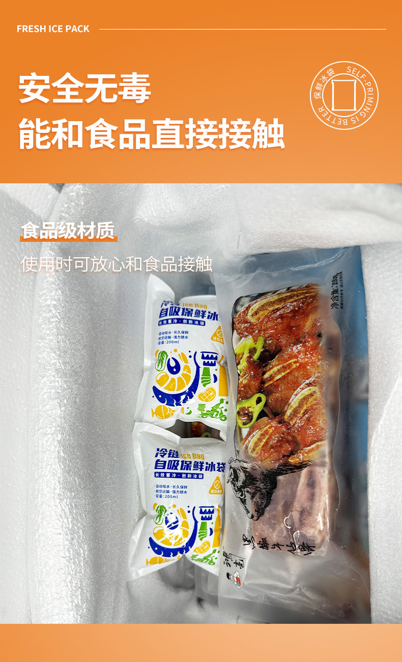 두꺼운 자체 흡수식 무급수 아이스백, 과일 보존 젤 아이스백, 익스프레스 테이크아웃 냉장 운송 아이스팩