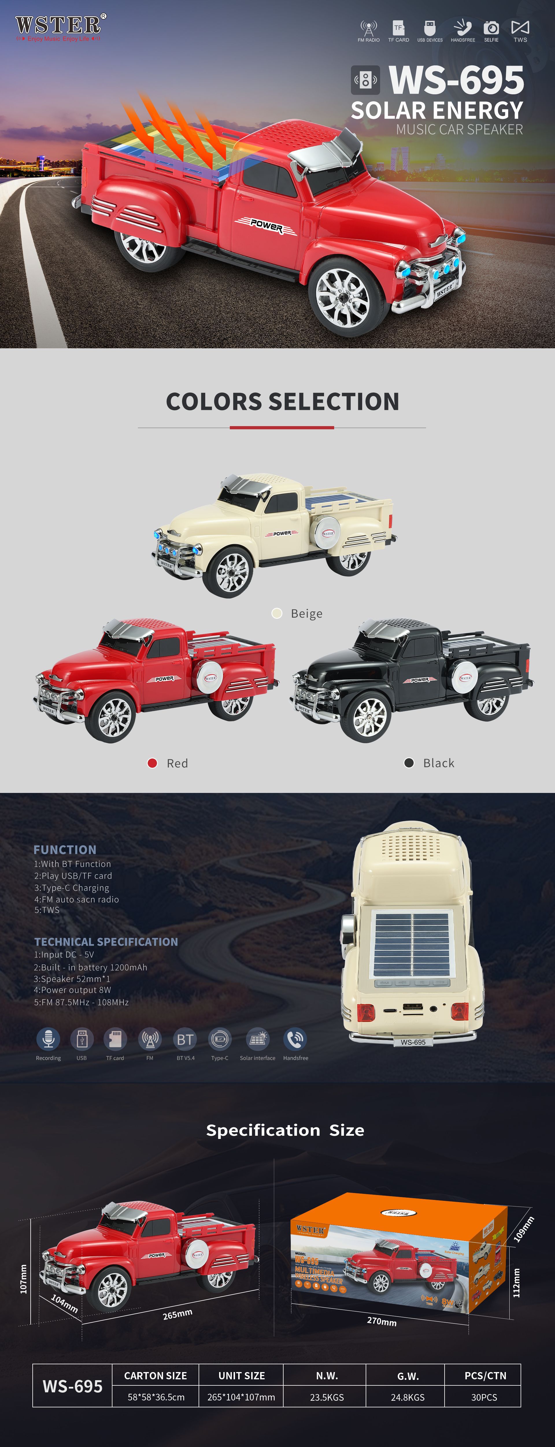 맞춤형 개인 모델 해외 고품질 태양광 충전 자동차 모델 블루투스 스피커 FM 라디오 서브우퍼 오디오 선물스토어 가기