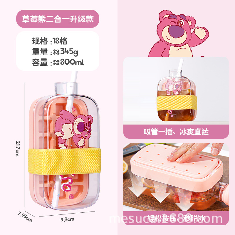 • DM25140-LO3 딸기곰 18칸 프레스형 얼음주전자(빨대 및 스트랩 포함)|0 얼음에 닿다|1초간 눌러 얼음을 제거하세요)