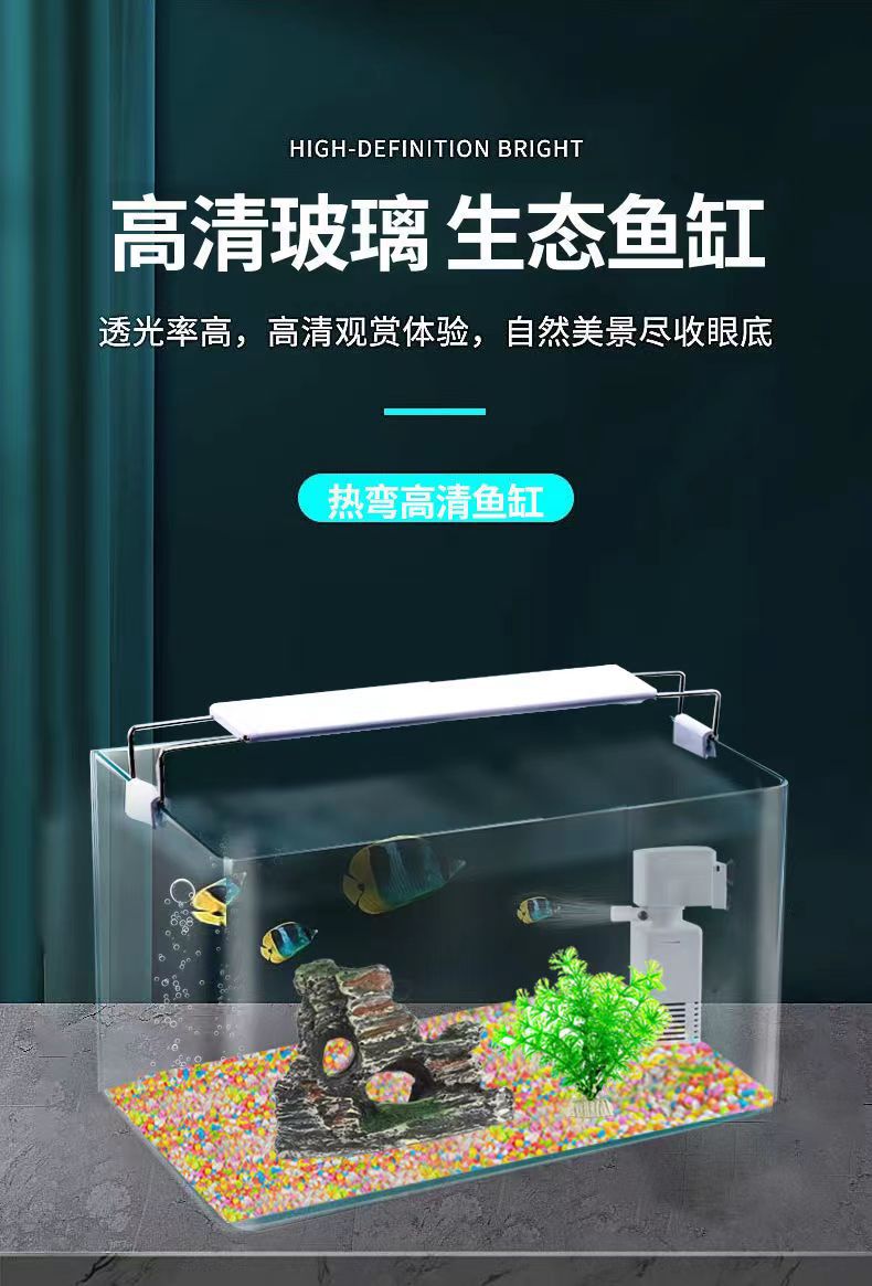 뜨거운 구부러진 유리 수조 거실 작은 수족관 데스크탑 홈 금붕어 수생 조경 직사각형 생태 베어 탱크