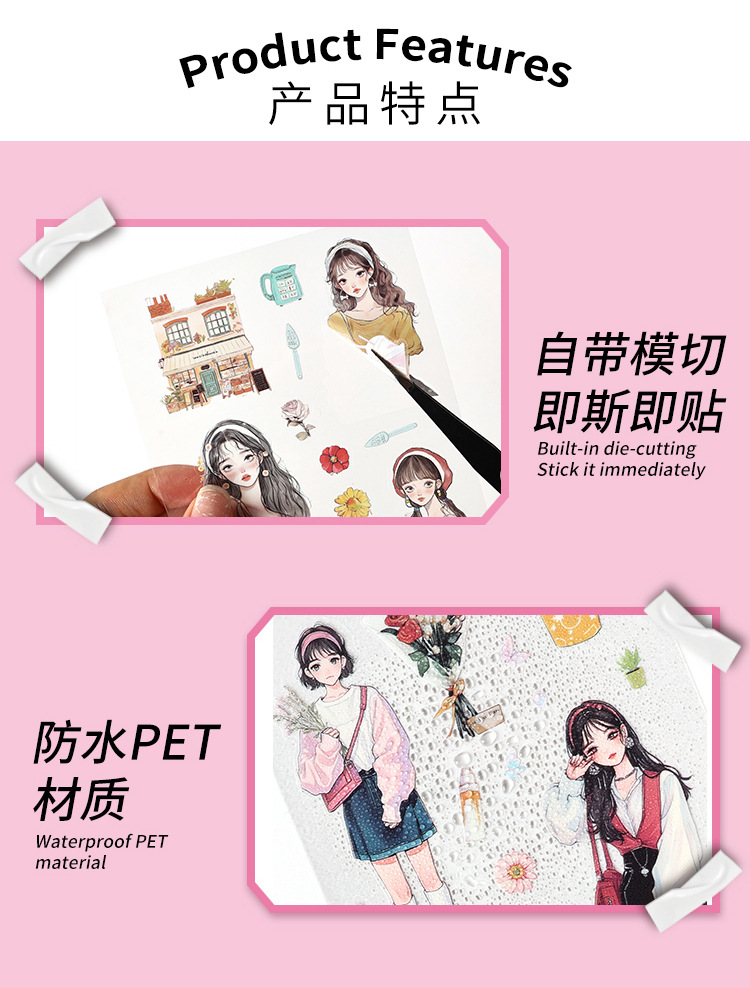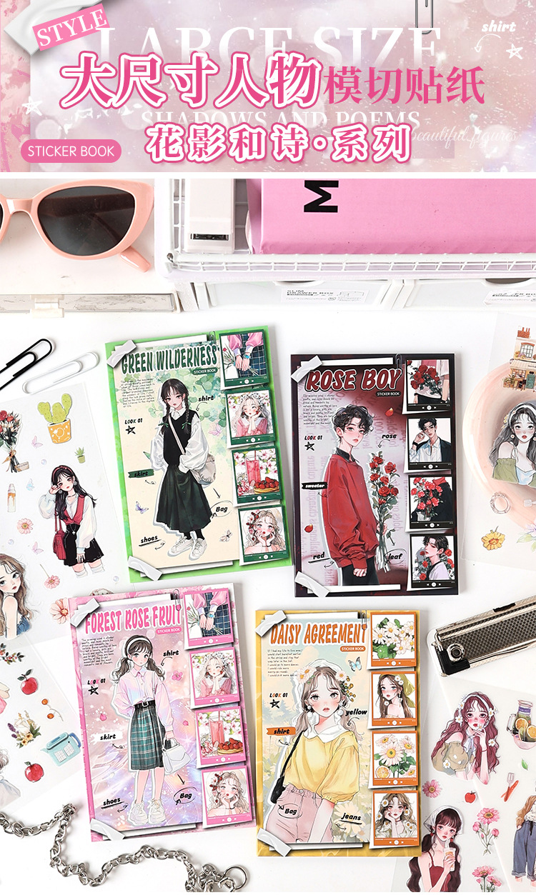 새로운 꽃 그림과 시 한국 소녀 스티커, 캐릭터 핸드북 재료, 애완 동물 스티커 도서 도매의 국경 간 특별 공급