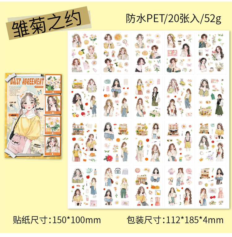 새로운 꽃 그림과 시 한국 소녀 스티커, 캐릭터 핸드북 재료, 애완 동물 스티커 도서 도매의 국경 간 특별 공급스토어 가기
