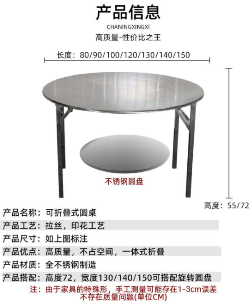 새로운 스테인레스 스틸 라운드 테이블 두꺼운 야외 식탁 접이식 거리 스톨 야시장 라운드 휴대용 다기능 작은 테이블