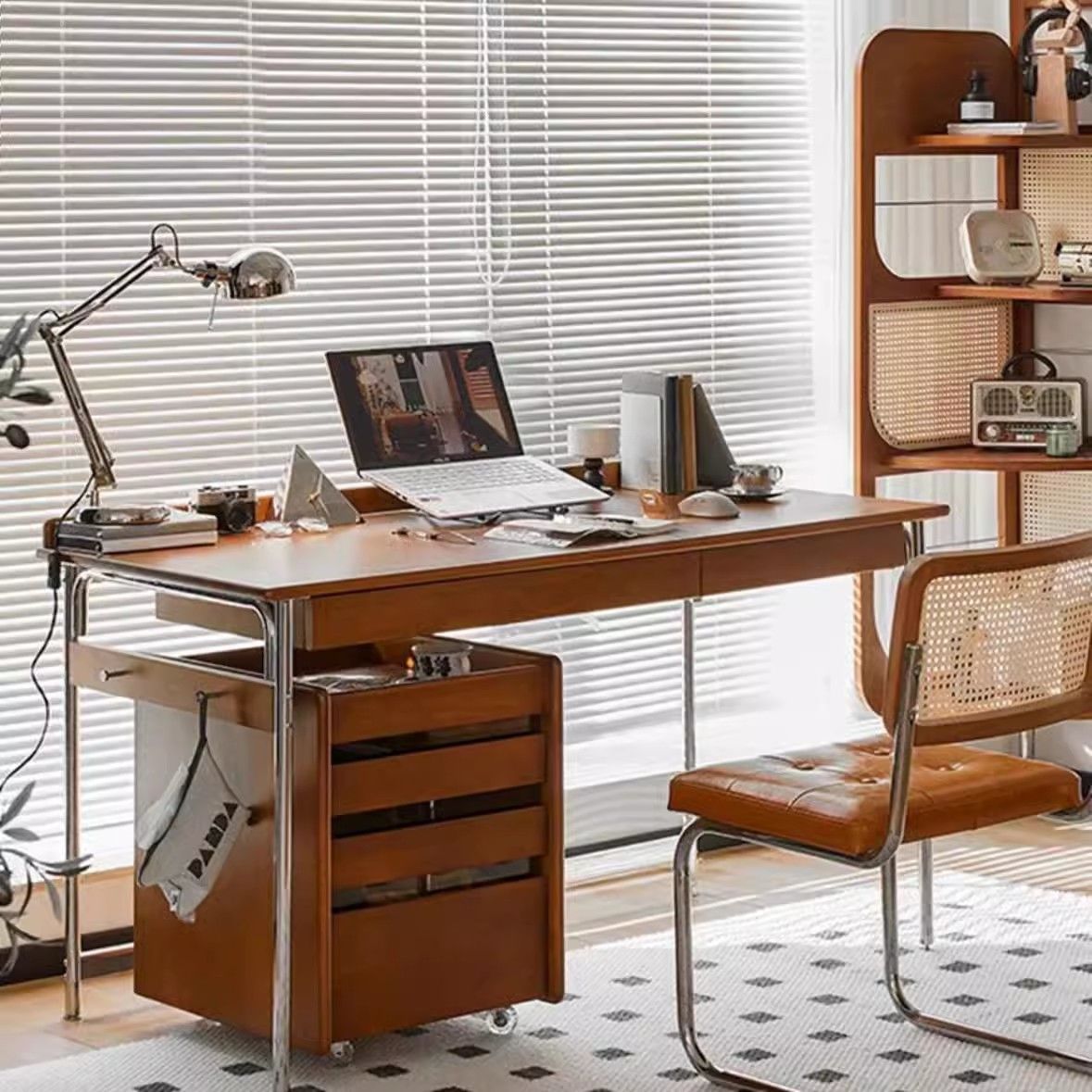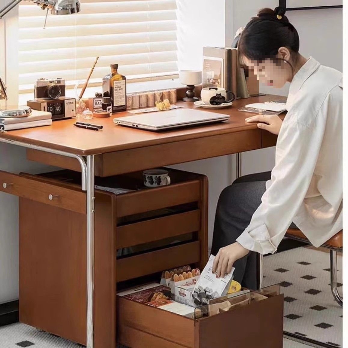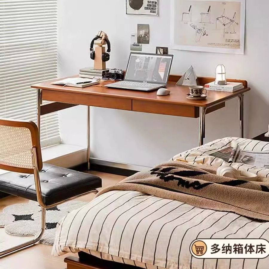 간단한 현대 스타일 책상 북유럽 중세 스타일 사무실 연구 테이블 더블 서랍 Foshan Furniture Cross Border스토어 가기