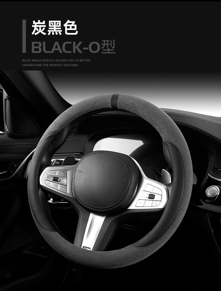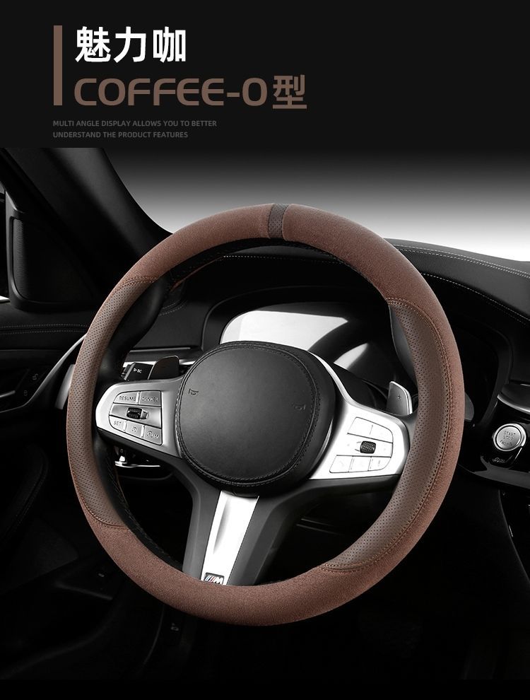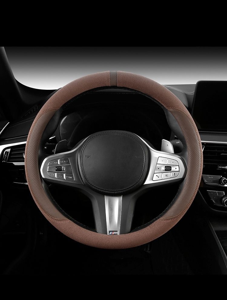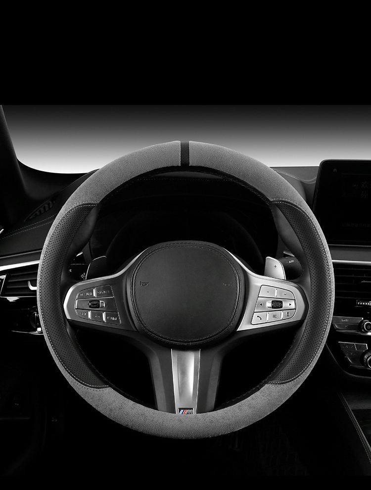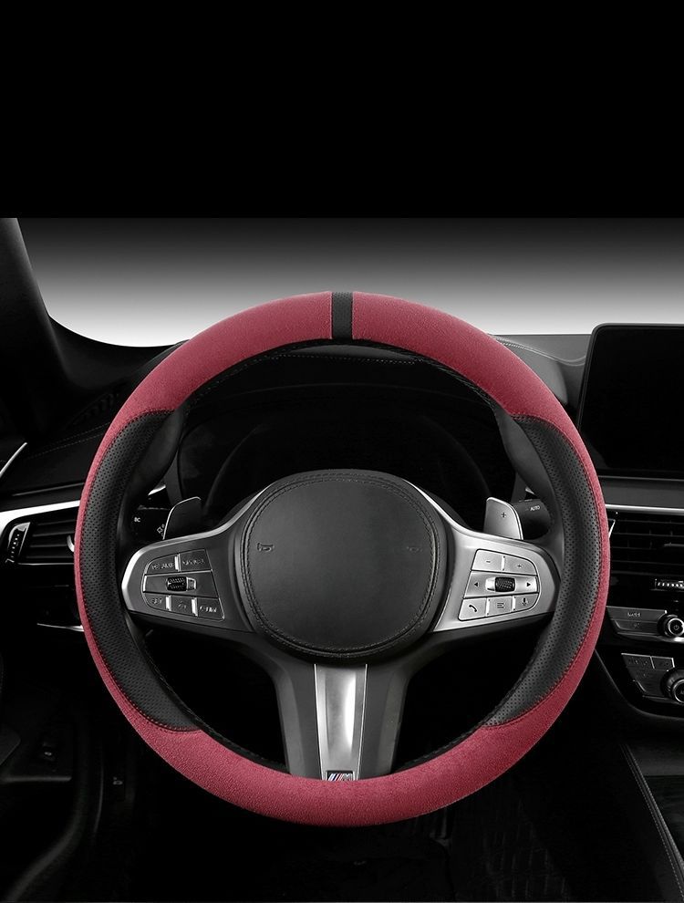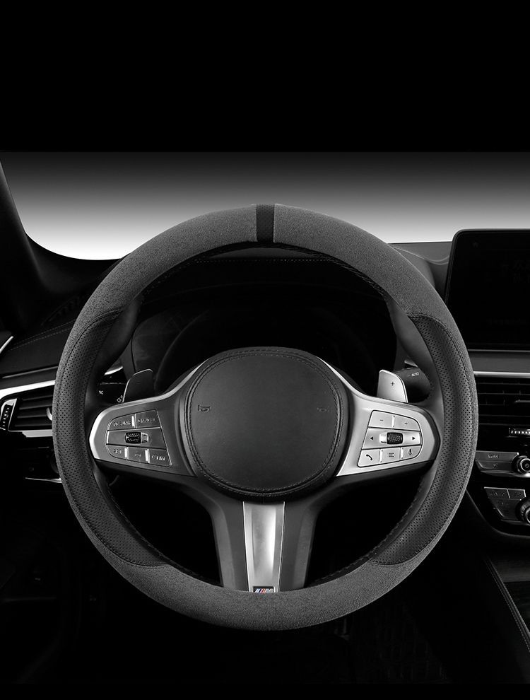 자동차 새로운 스웨이드 스티어링 휠 커버, 사계절 범용 미끄럼 방지 땀 흡수 초박형 스웨이드 인테리어 스티어링 휠 커버스토어 가기