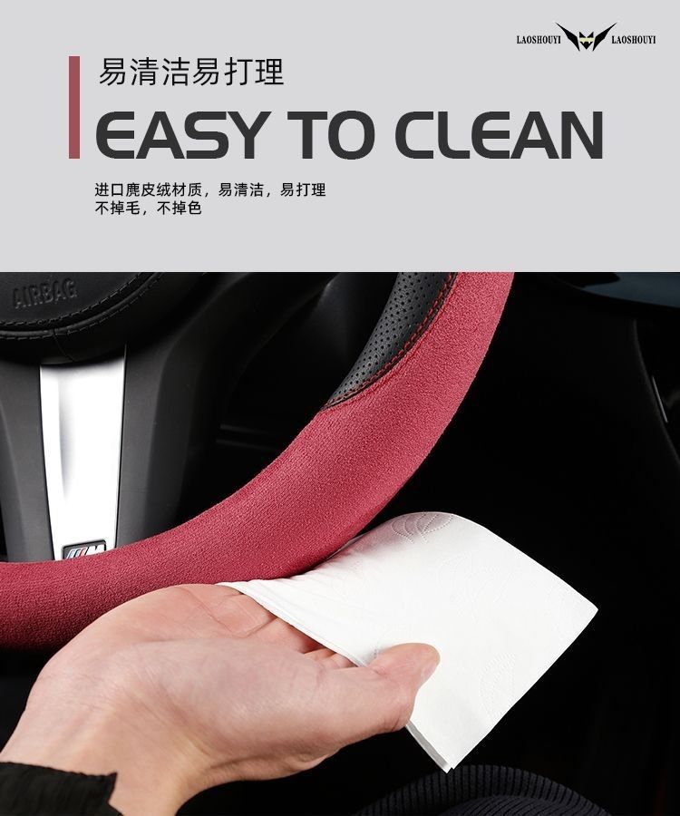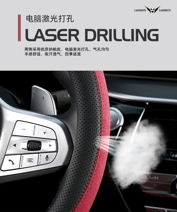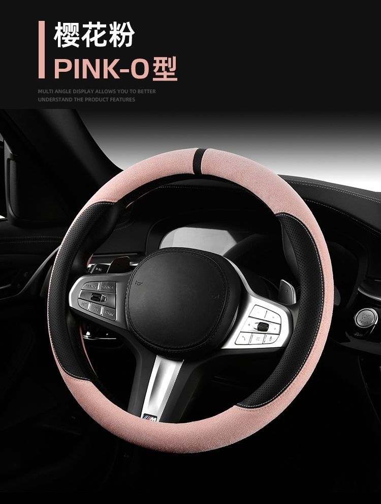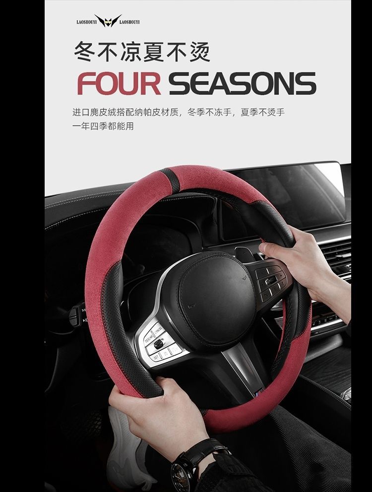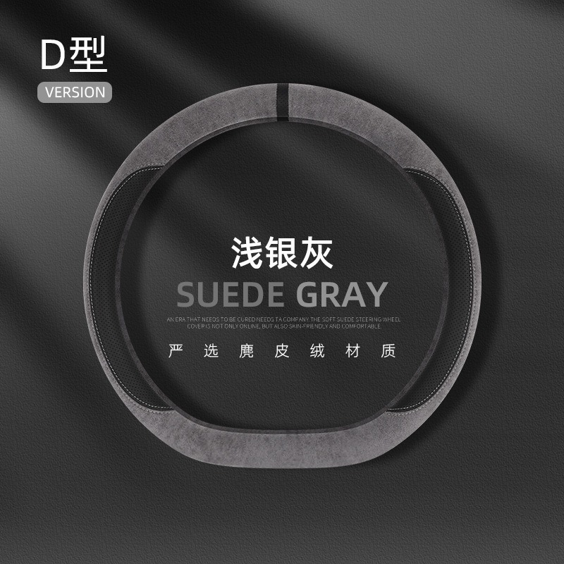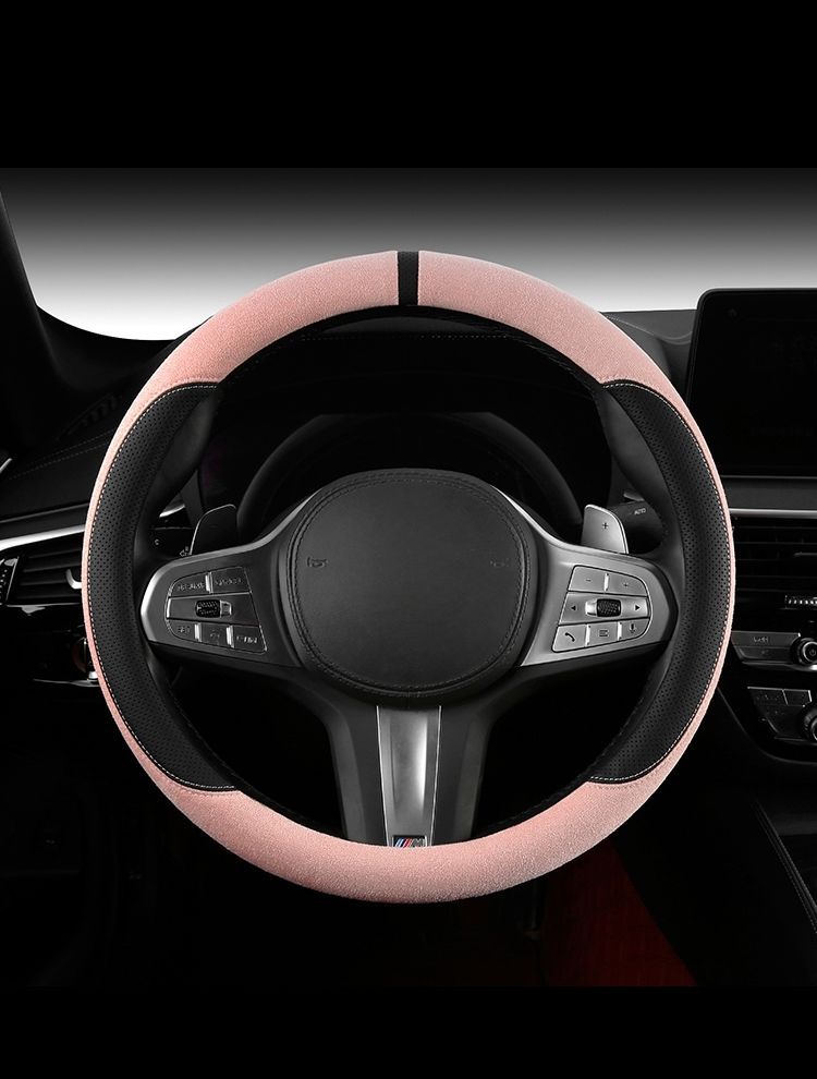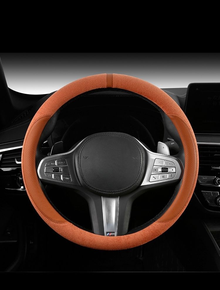 자동차 새로운 스웨이드 스티어링 휠 커버, 사계절 범용 미끄럼 방지 땀 흡수 초박형 스웨이드 인테리어 스티어링 휠 커버스토어 가기