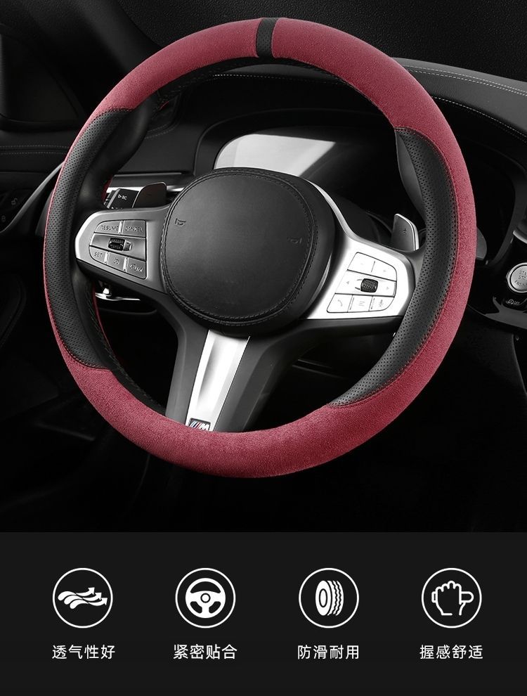 자동차 새로운 스웨이드 스티어링 휠 커버, 사계절 범용 미끄럼 방지 땀 흡수 초박형 스웨이드 인테리어 스티어링 휠 커버