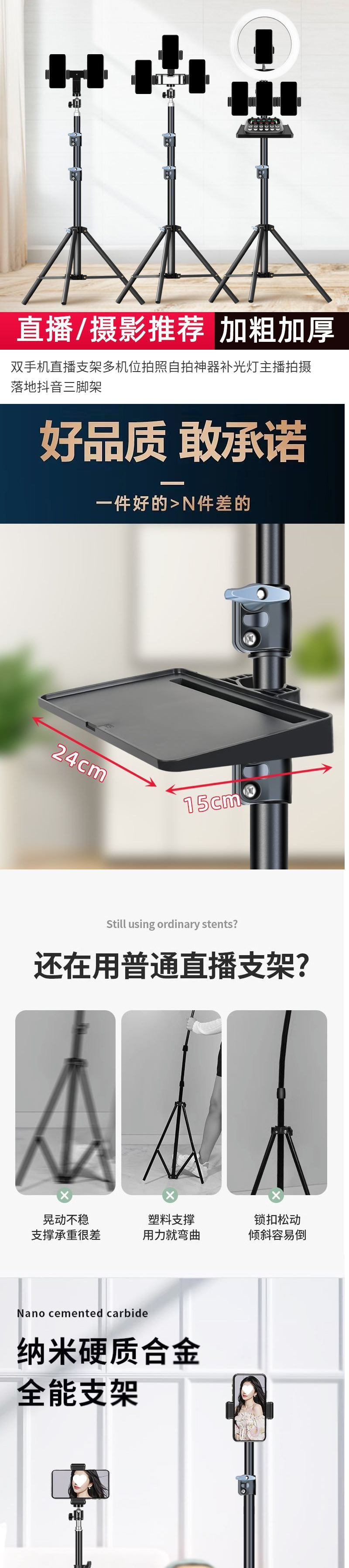 듀얼 카메라 야외 라이브 방송 스탠드, 멀티 카메라 사진 라이브 방송 스탠드, 필 라이트, 앵커 촬영 플로어 스탠딩 삼각대스토어 가기