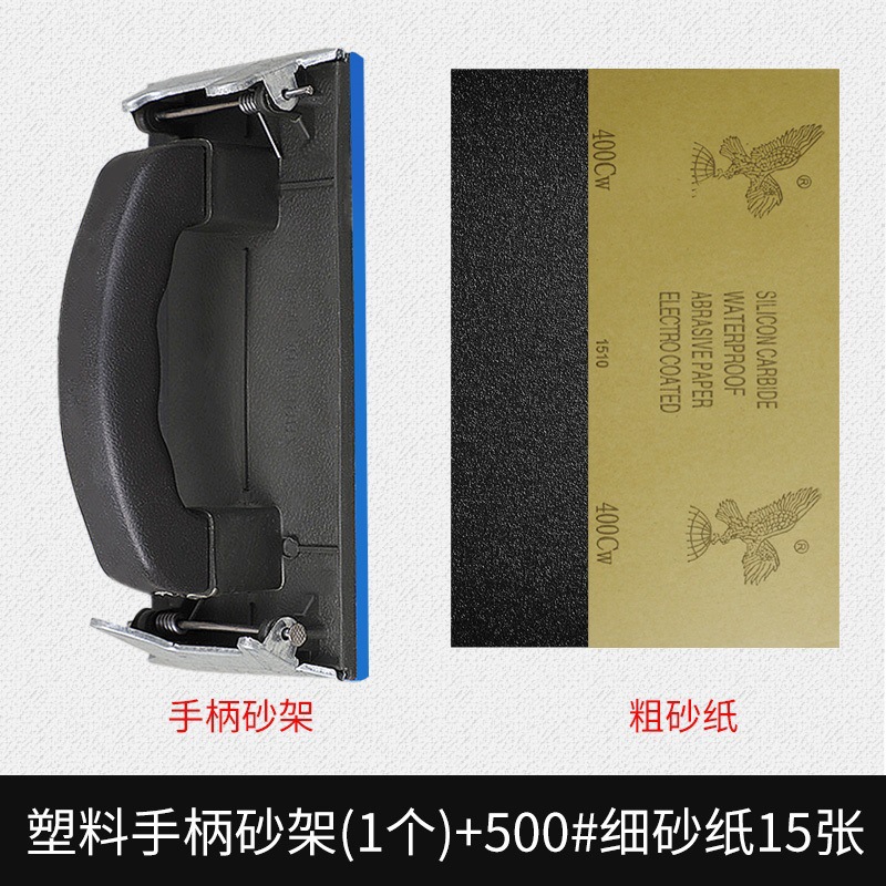 • 플라스틱 손잡이 모래걸이(1) + 500방 고운 사포(15장)