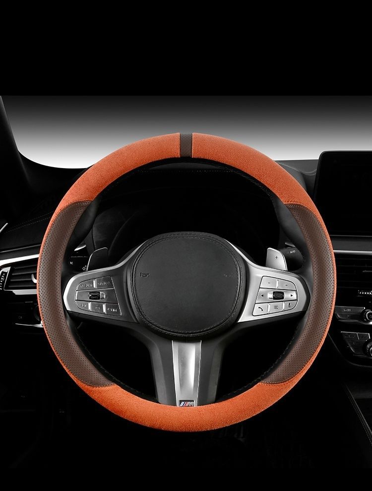 사계절 범용 스웨이드 새로운 스티어링 휠 커버, 간단하고 실용적인 자동차 스티어링 휠, 땀 흡수성, 미끄럼 방지, 편안하고 통기성스토어 가기