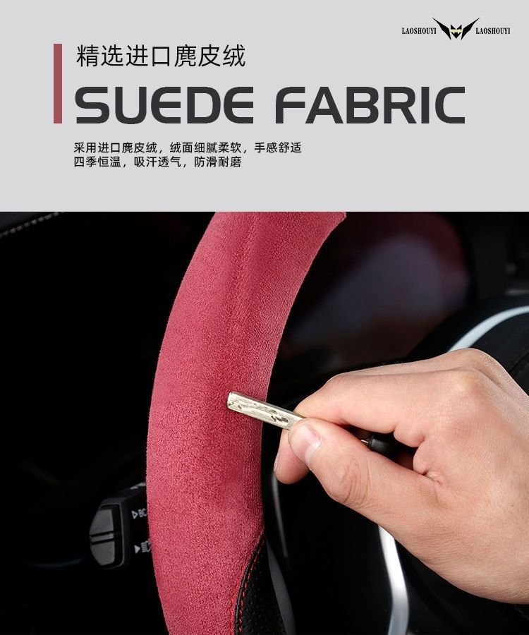 사계절 범용 스웨이드 새로운 스티어링 휠 커버, 간단하고 실용적인 자동차 스티어링 휠, 땀 흡수성, 미끄럼 방지, 편안하고 통기성