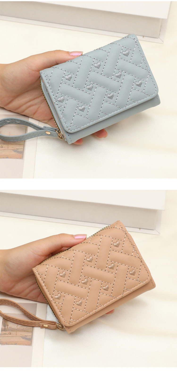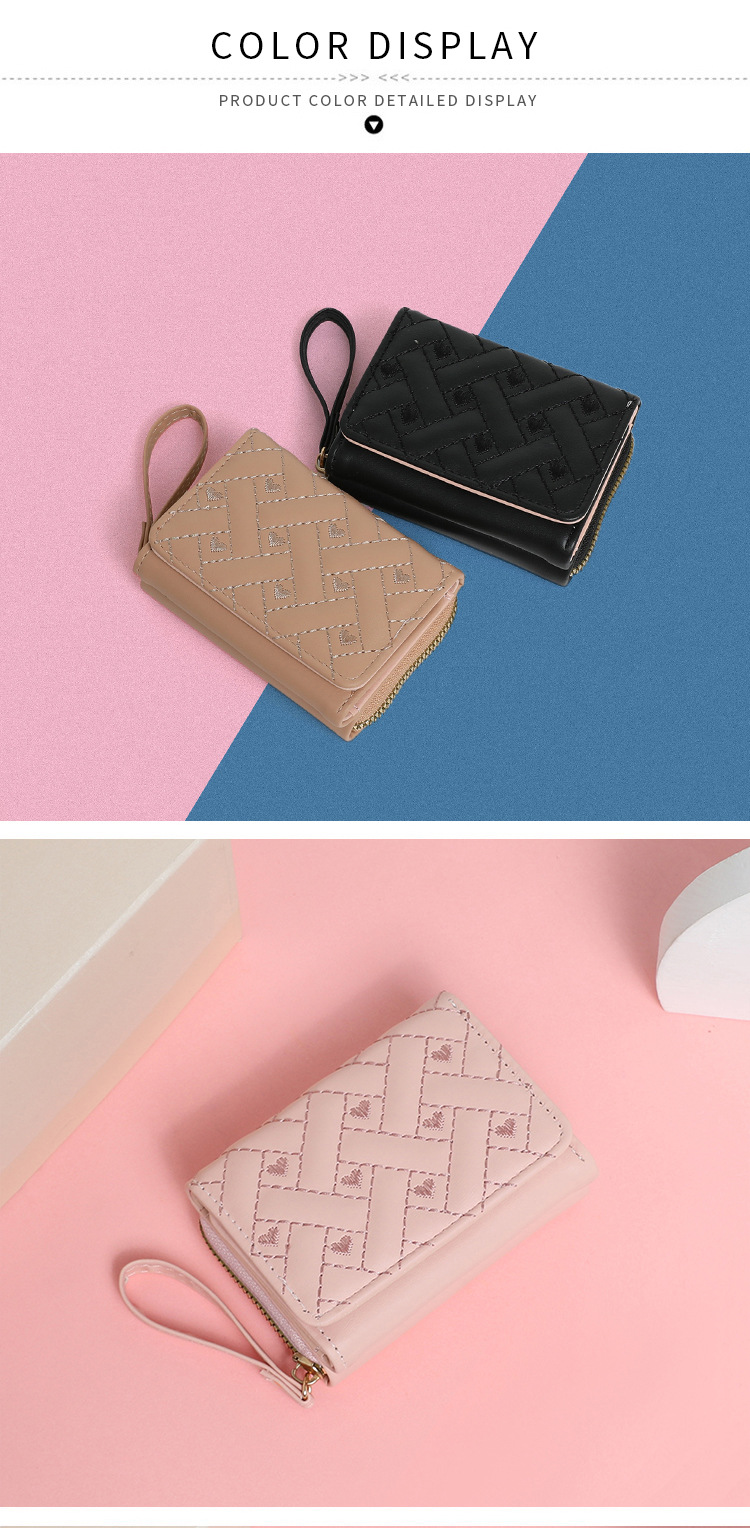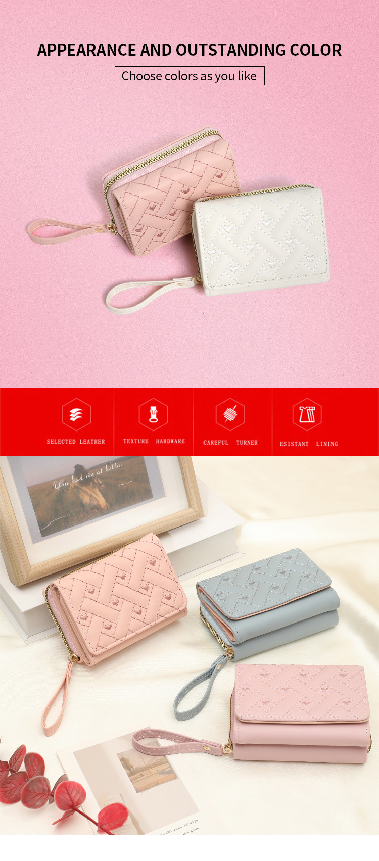 공장 새 여성용 지갑 짧은 간단한 수 놓은 사랑 PU 동전 지갑 멀티 카드 슬롯 작은 지갑 지갑 카드 홀더