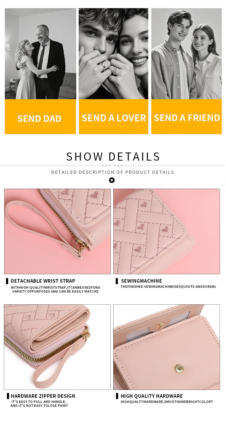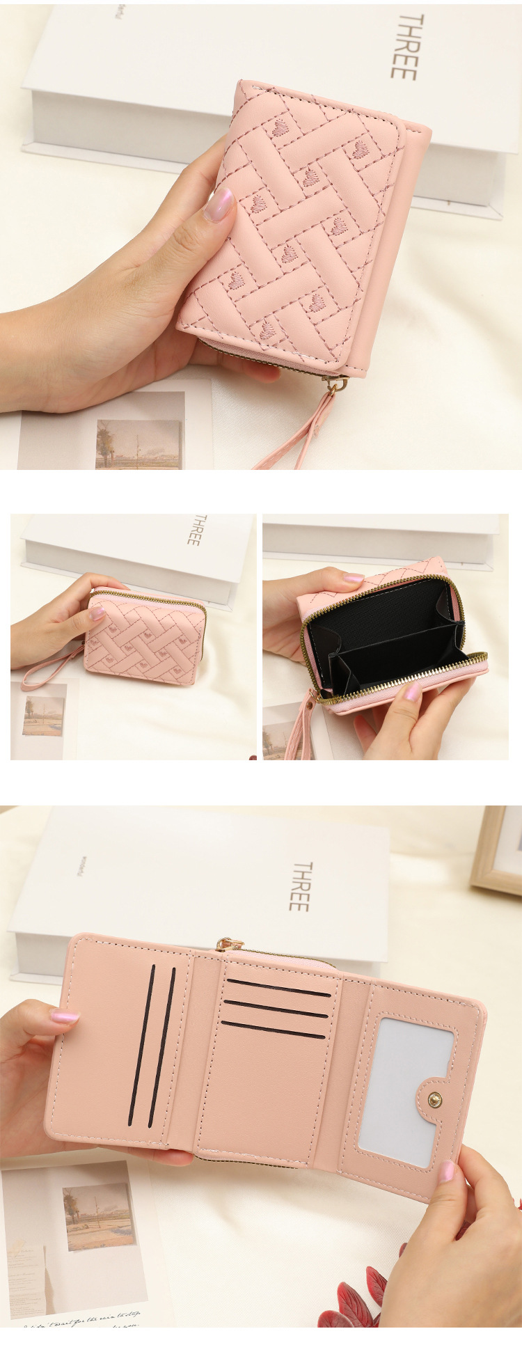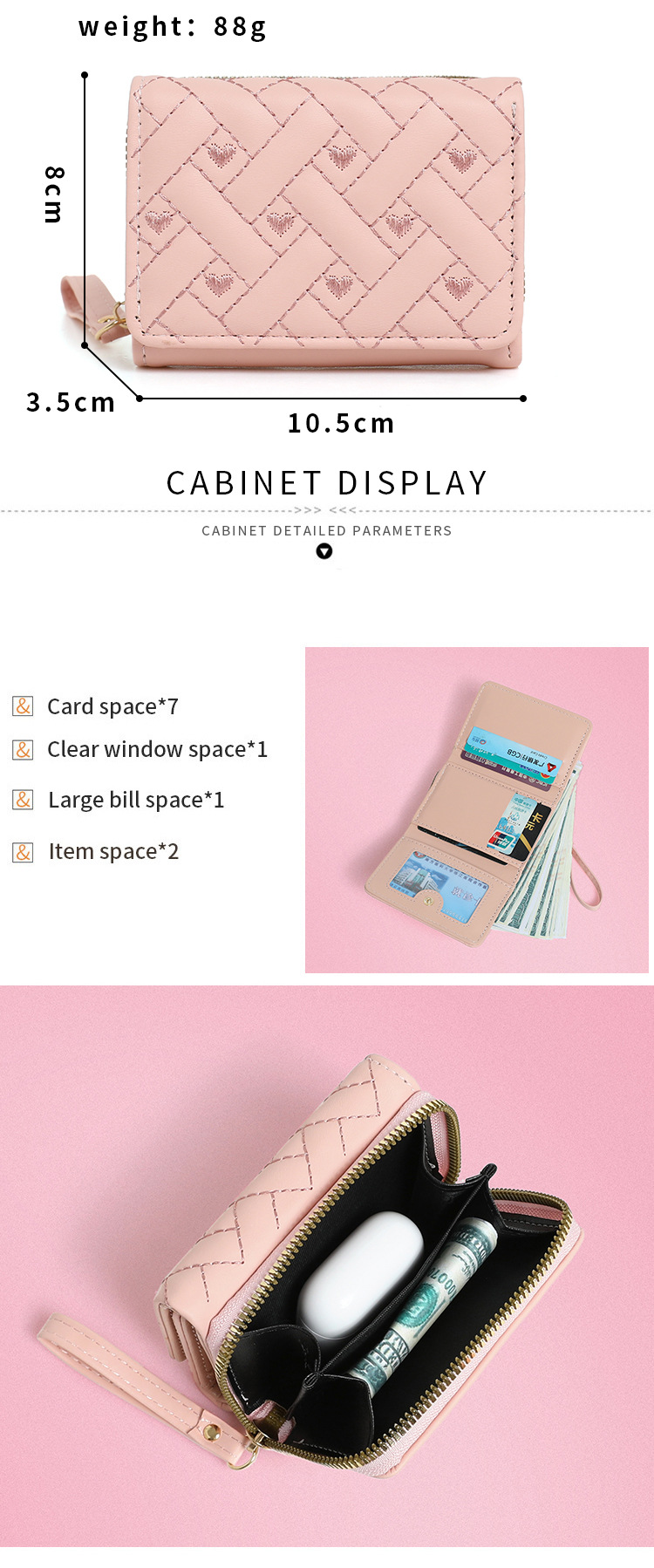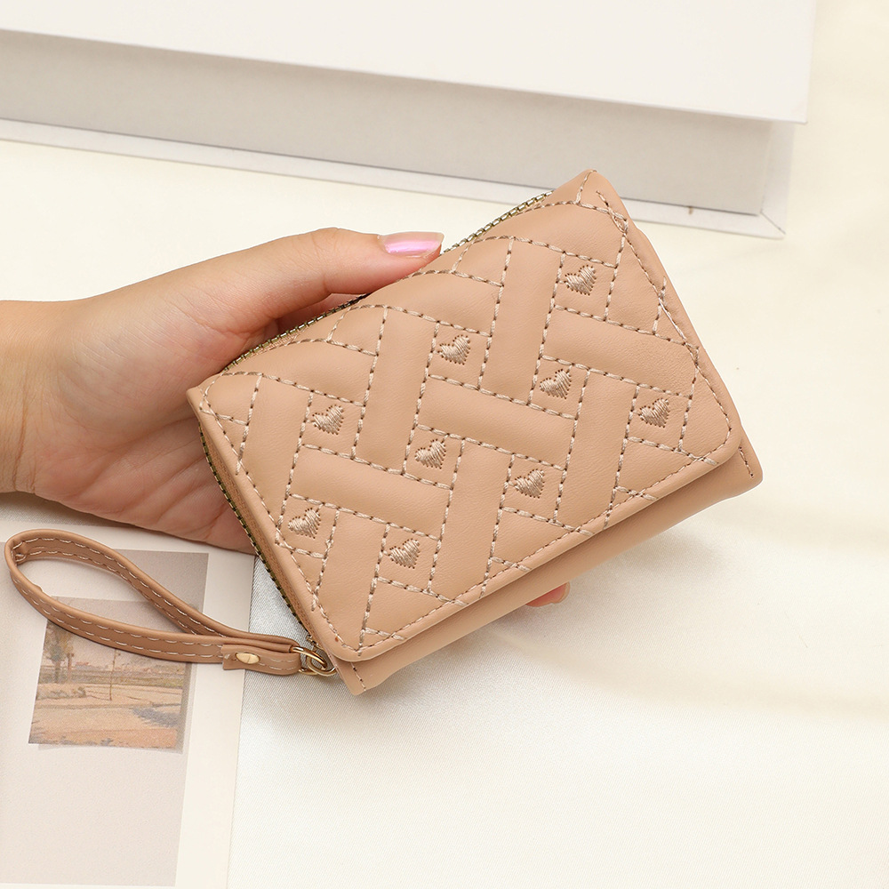 공장 새 여성용 지갑 짧은 간단한 수 놓은 사랑 PU 동전 지갑 멀티 카드 슬롯 작은 지갑 지갑 카드 홀더