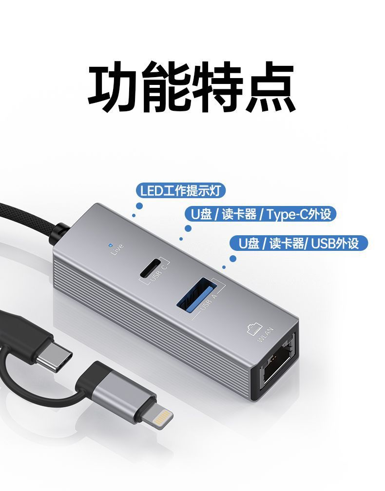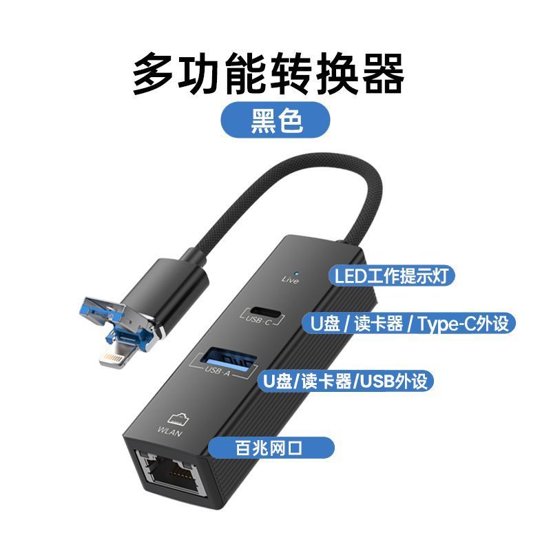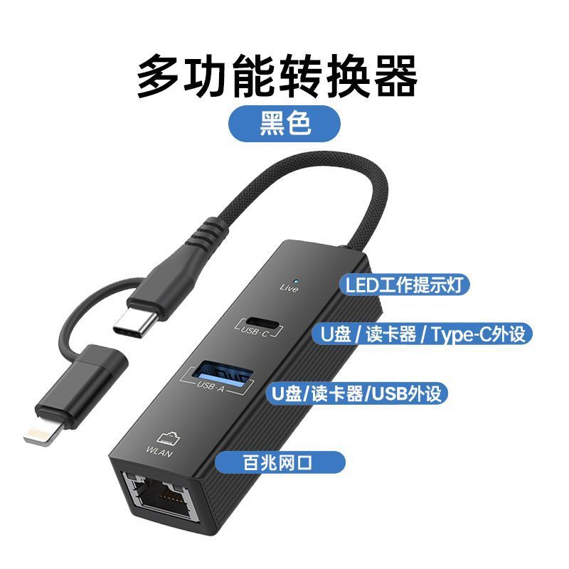 • 검정색 [Apple+Type-C] 100M 네트워크 포트+USB+Type-C