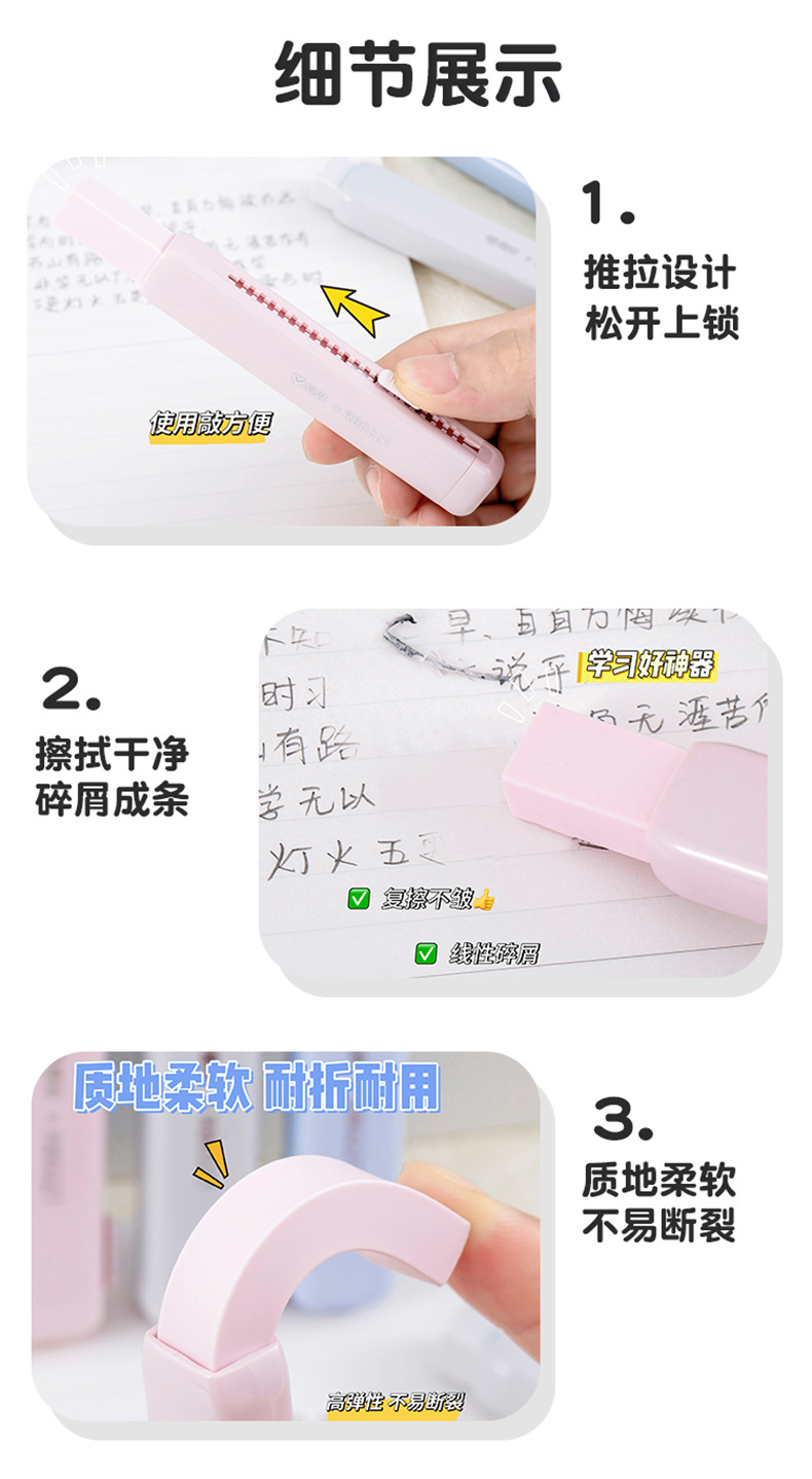 창의적인 밀고 당기는 지우개, 흔적 없이 깨끗하고 부스러기 적은 연필 필기용 지우개, 스케치 및 그림용 지우개, 초등학생용 지우개스토어 가기