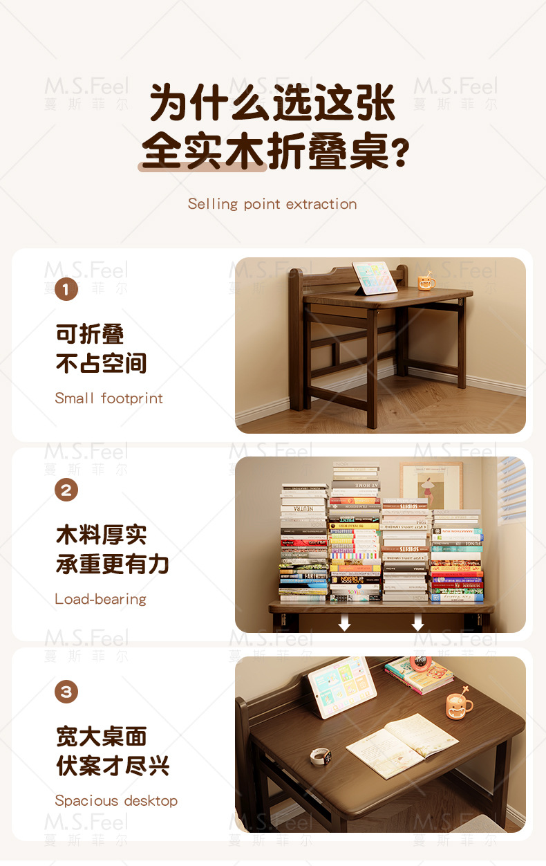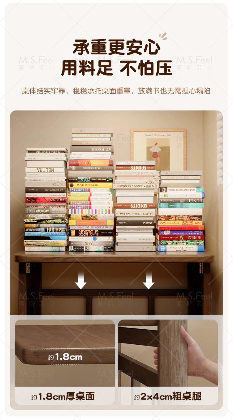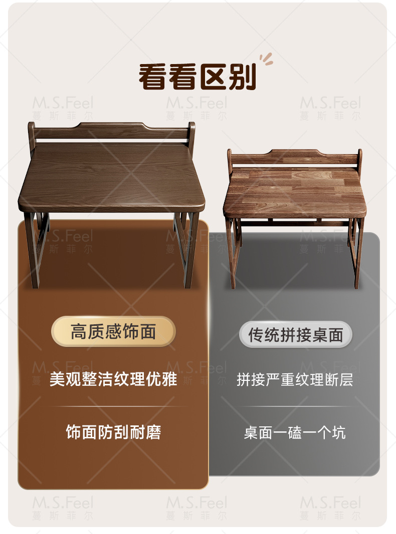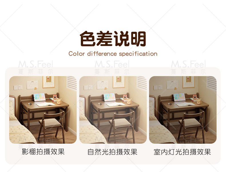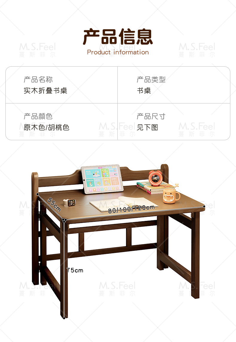 • 연한 체리색 80CM 접이식 책상 + 두꺼운 원목 의자, 설치 없이 문앞까지 배송