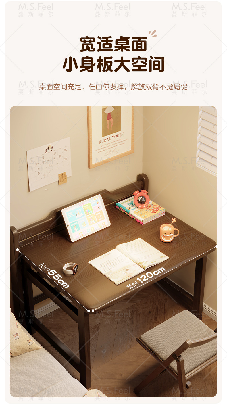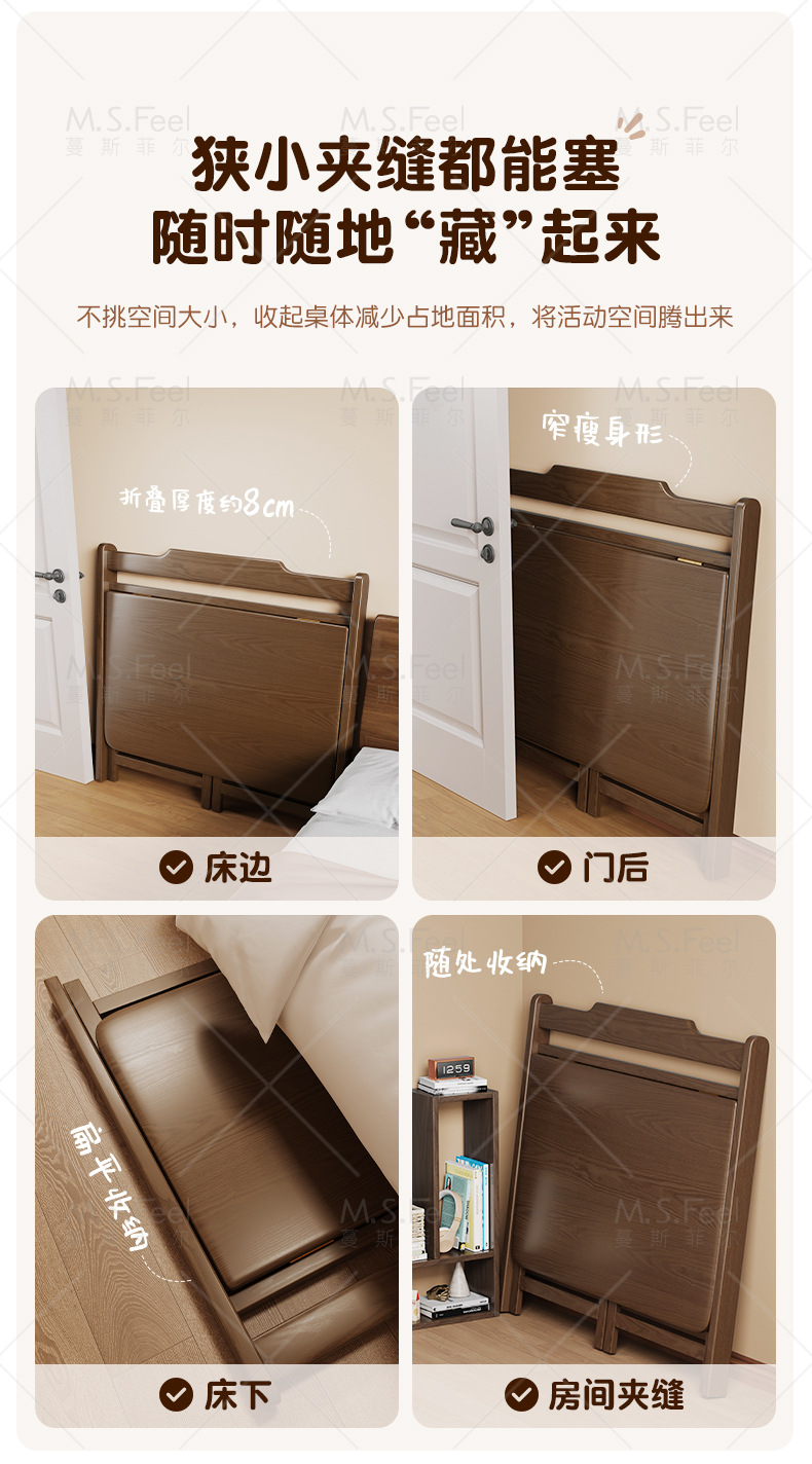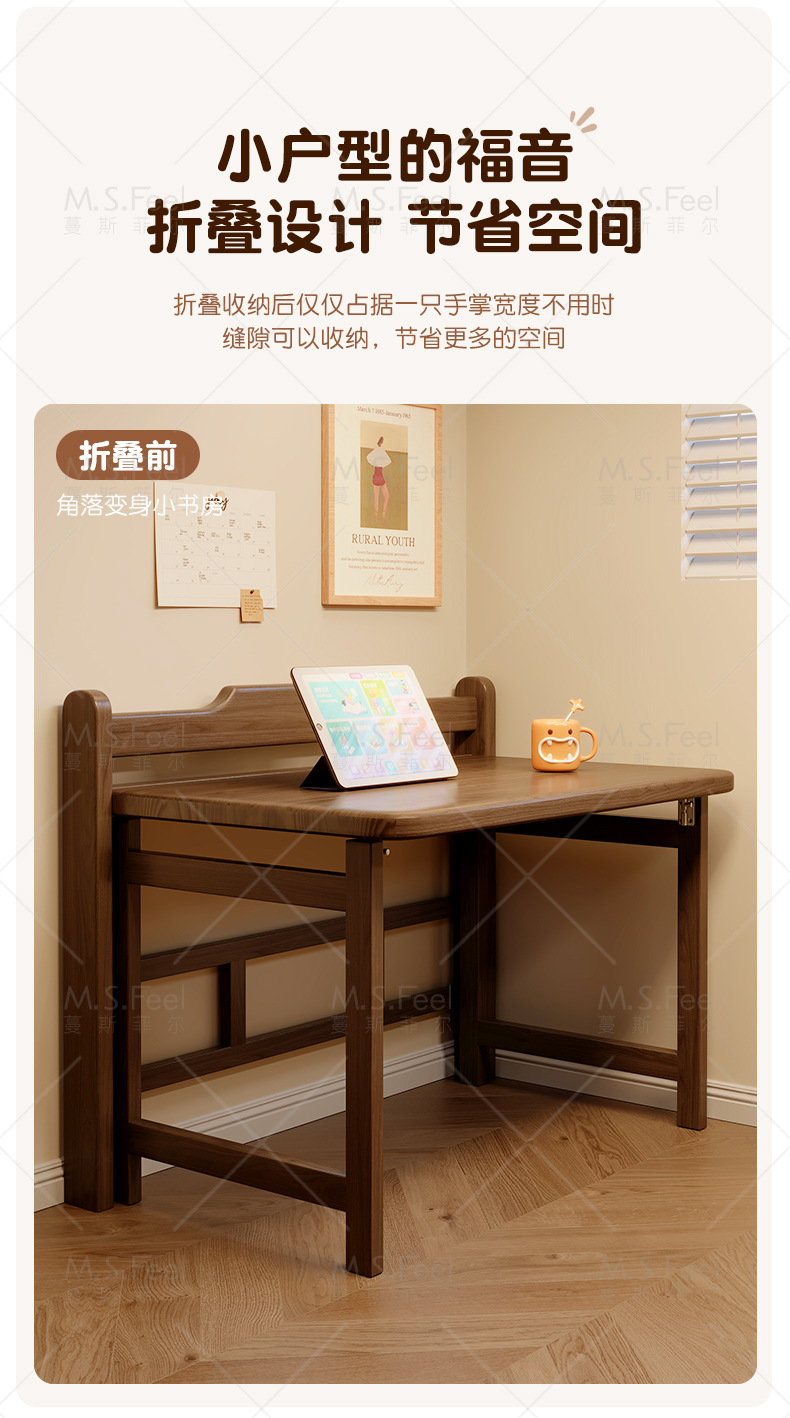 • 블랙 월넛 색상 80CM 원목 접이식 책상 설치 없이 문앞까지 배송됩니다