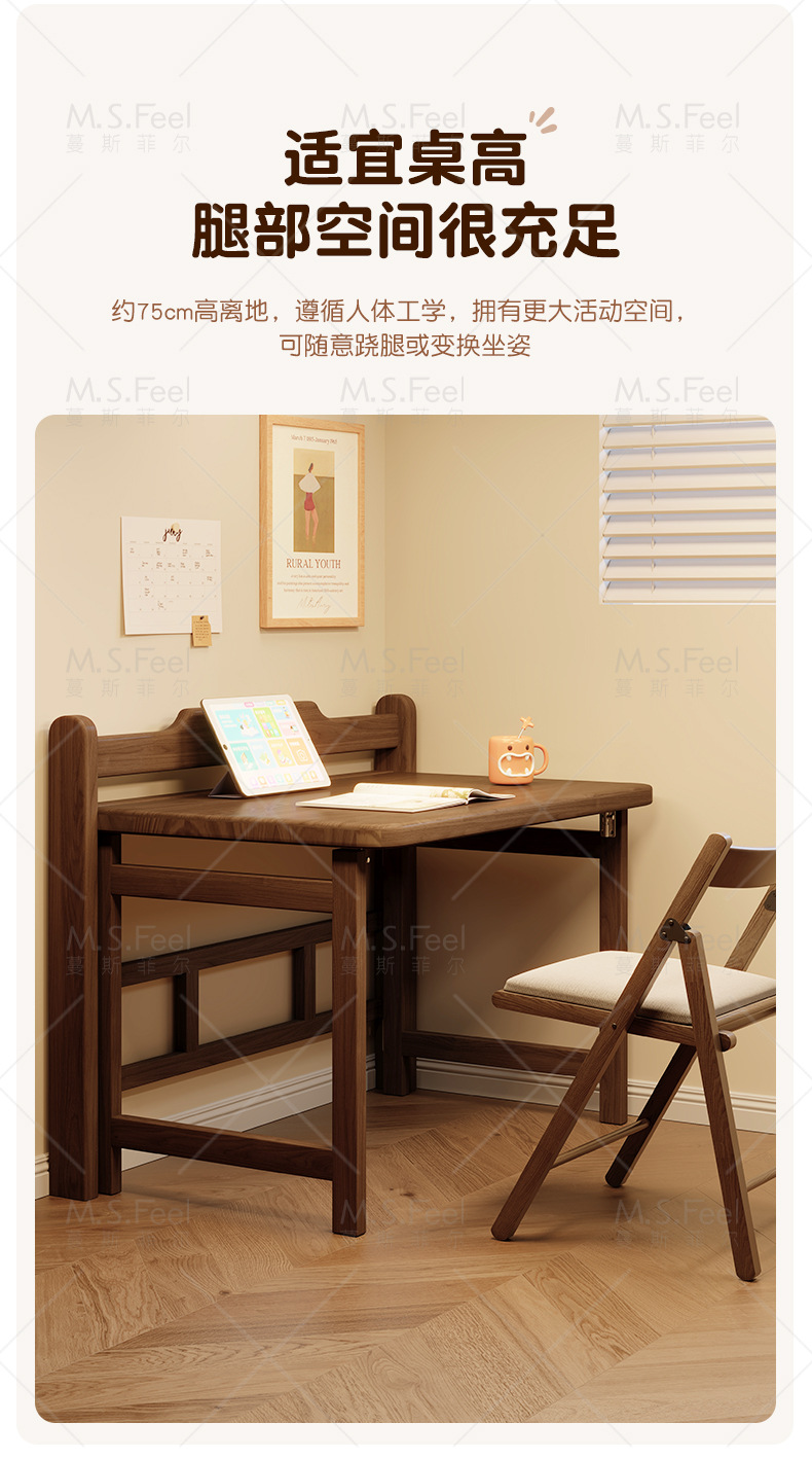• 블랙 월넛 컬러 80CM 접이식 책상 + 두꺼운 원목 의자, 설치 없이 문앞까지 배송