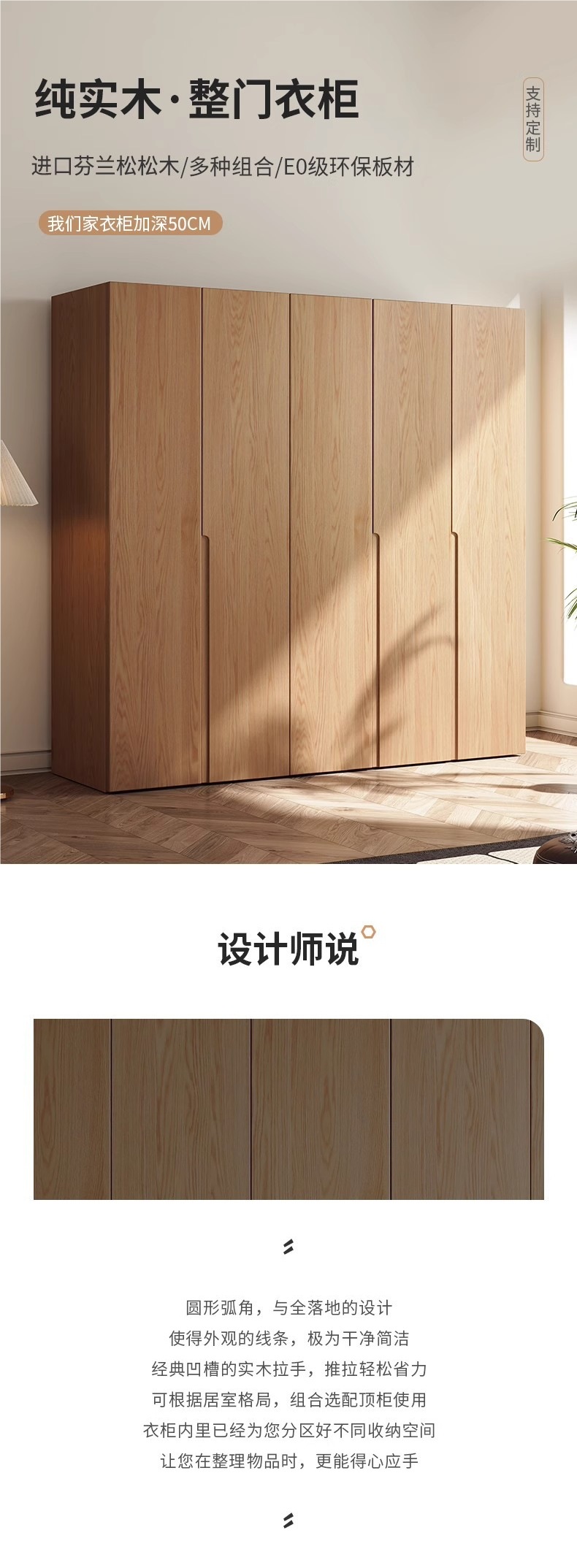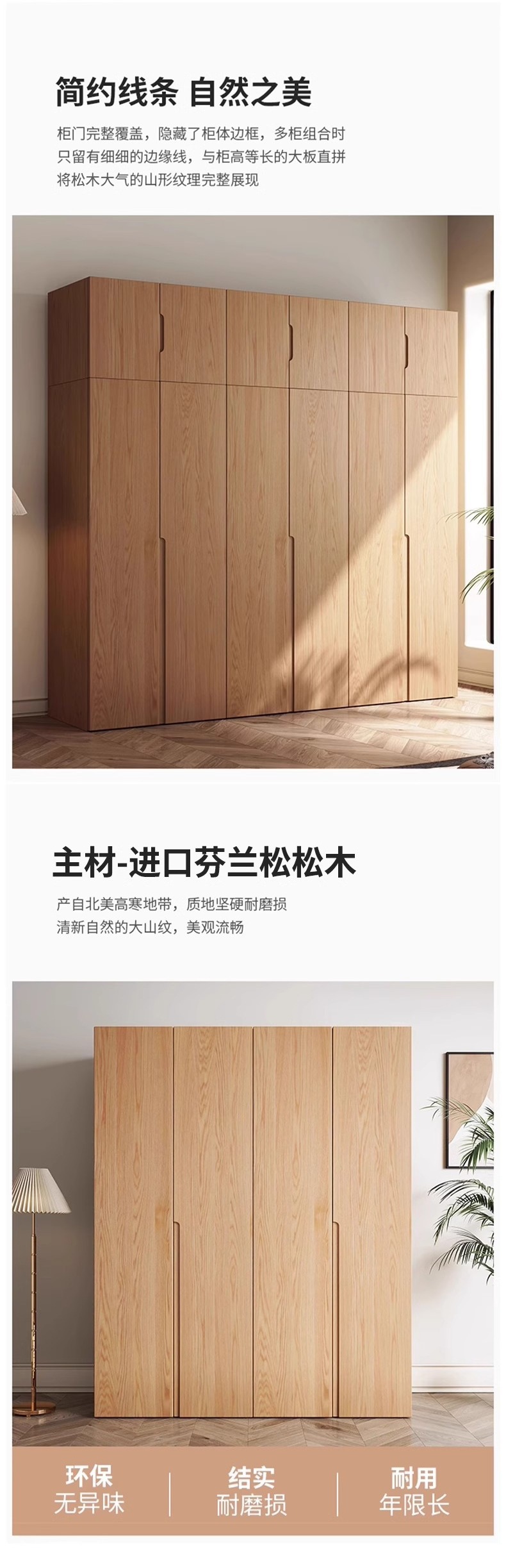 가정용 침실을 위한 간단한 전체 단단한 나무 옷장, 통나무 캐비닛, 고급 옷장, 소나무 보관 캐비닛, 어린이 보관 캐비닛