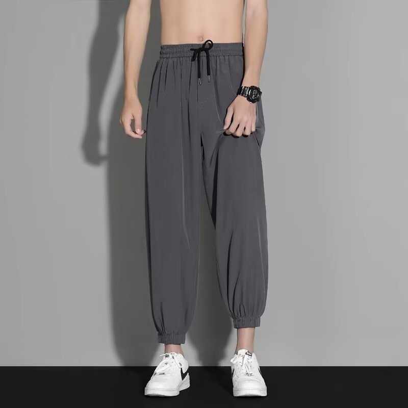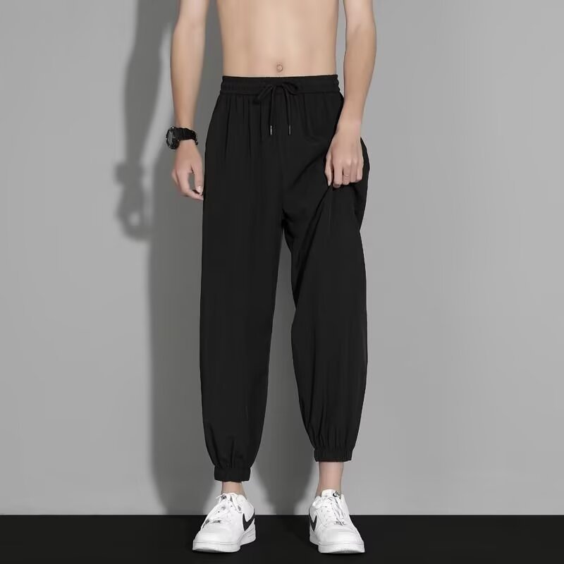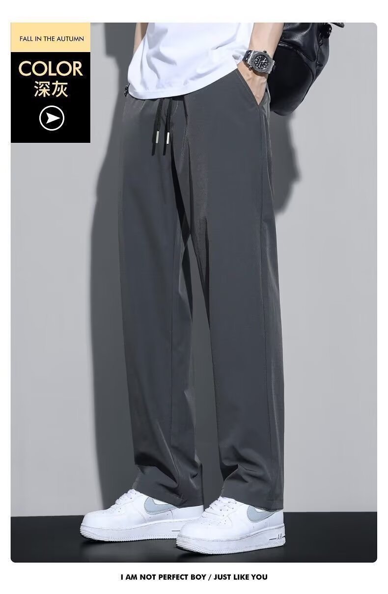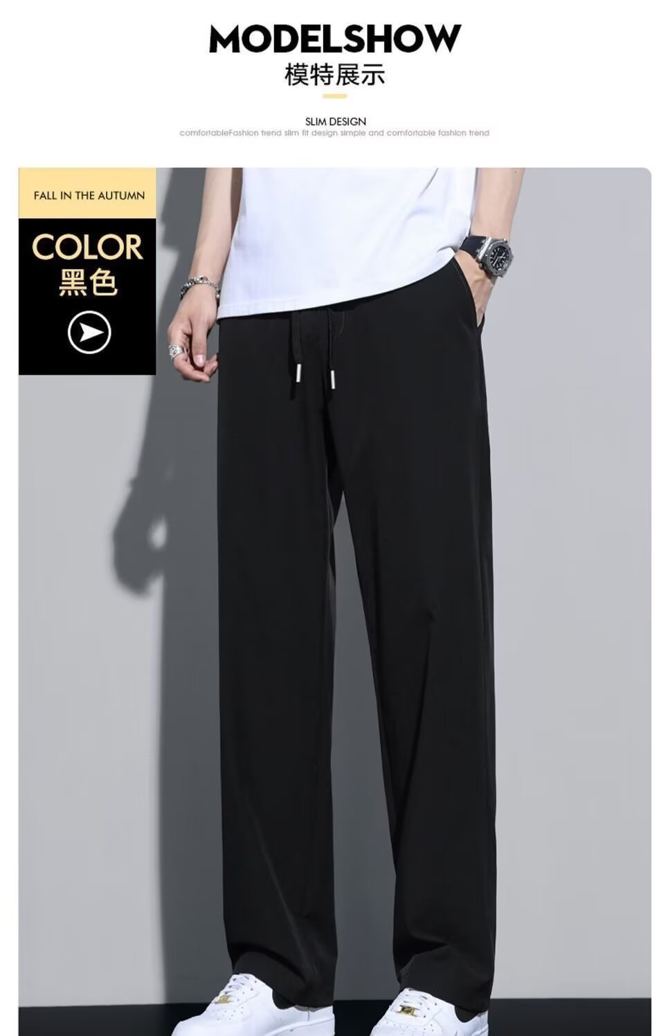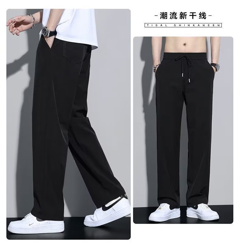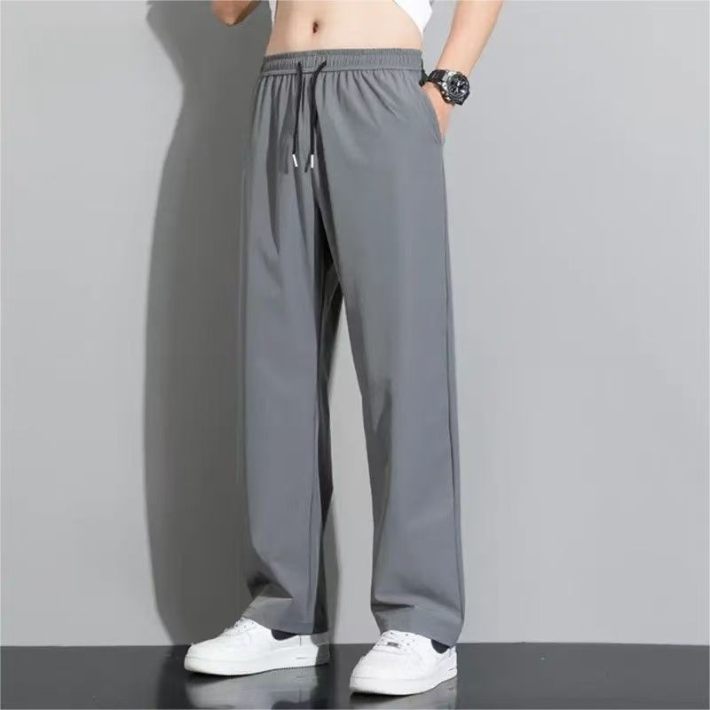 공장 도매 가격 여름 새로운 얼음 실크 속건성 캐주얼 바지 남성 여름 얇은 슬림 루즈 스포츠 바지 스트레이트 바지스토어 가기