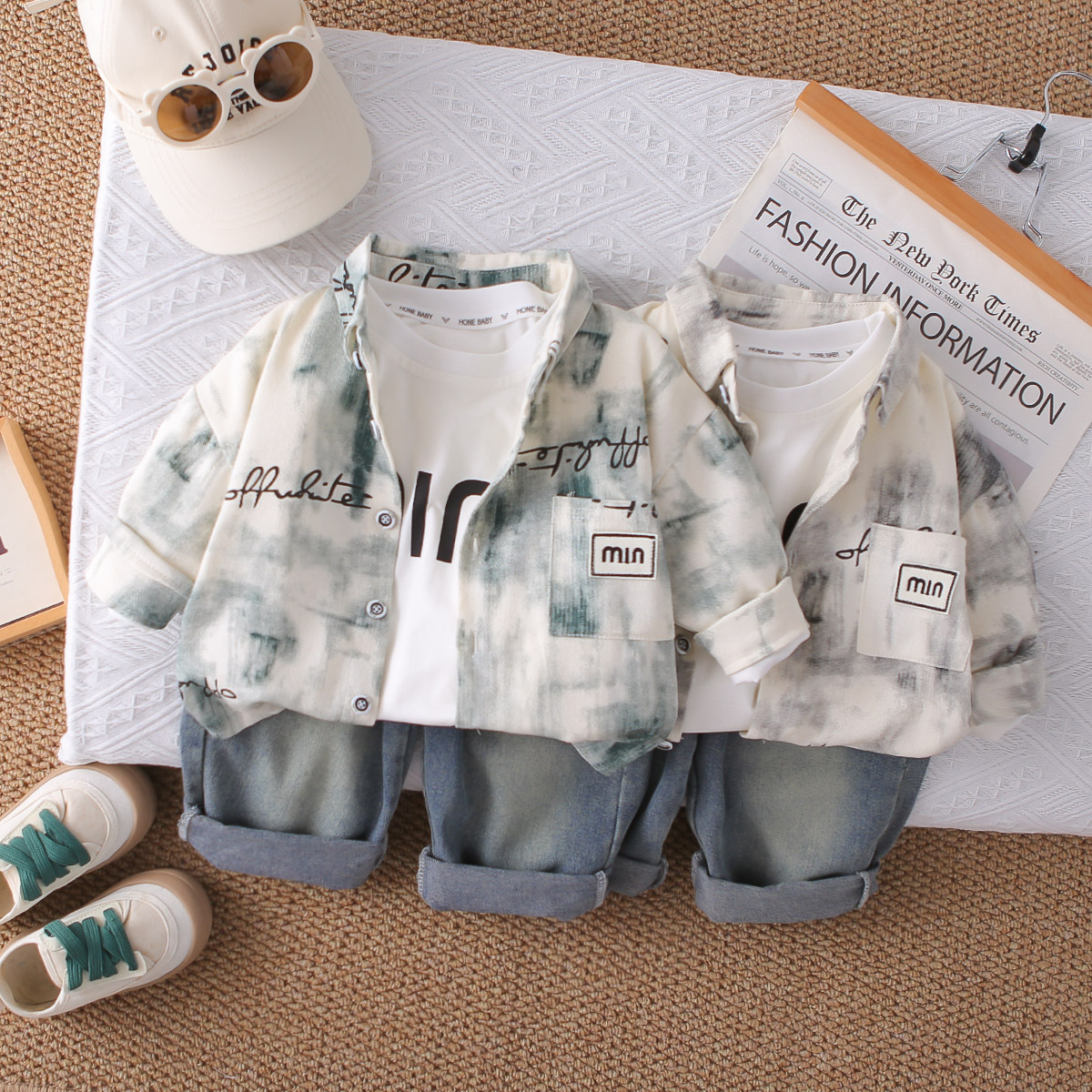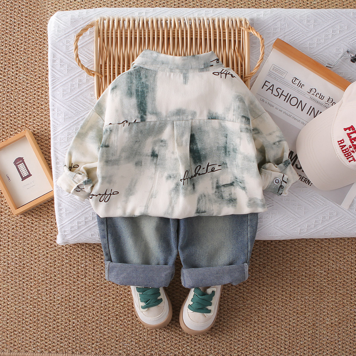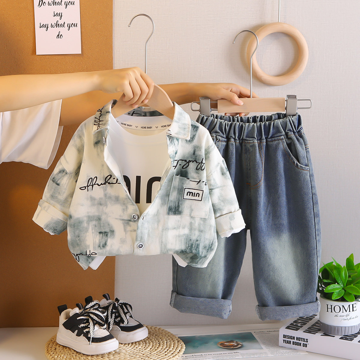 아동 의류 소년 가을 운동복 2025 새로운 봄, 가을 아기 소년 옷 중소형 어린이 잘 생긴 패션 정장스토어 가기