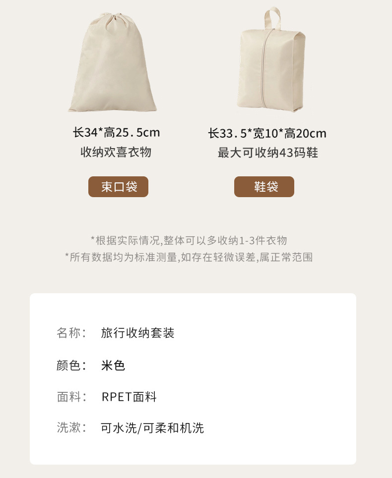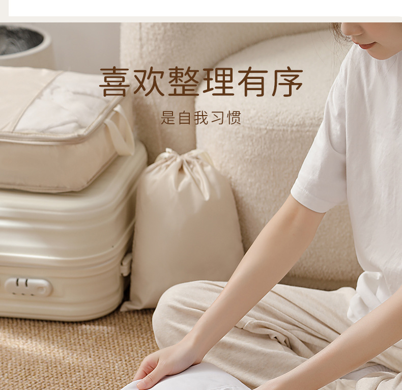 • 트윌 압축 여행가방 베이지 34*25.5cm (조임주머니)