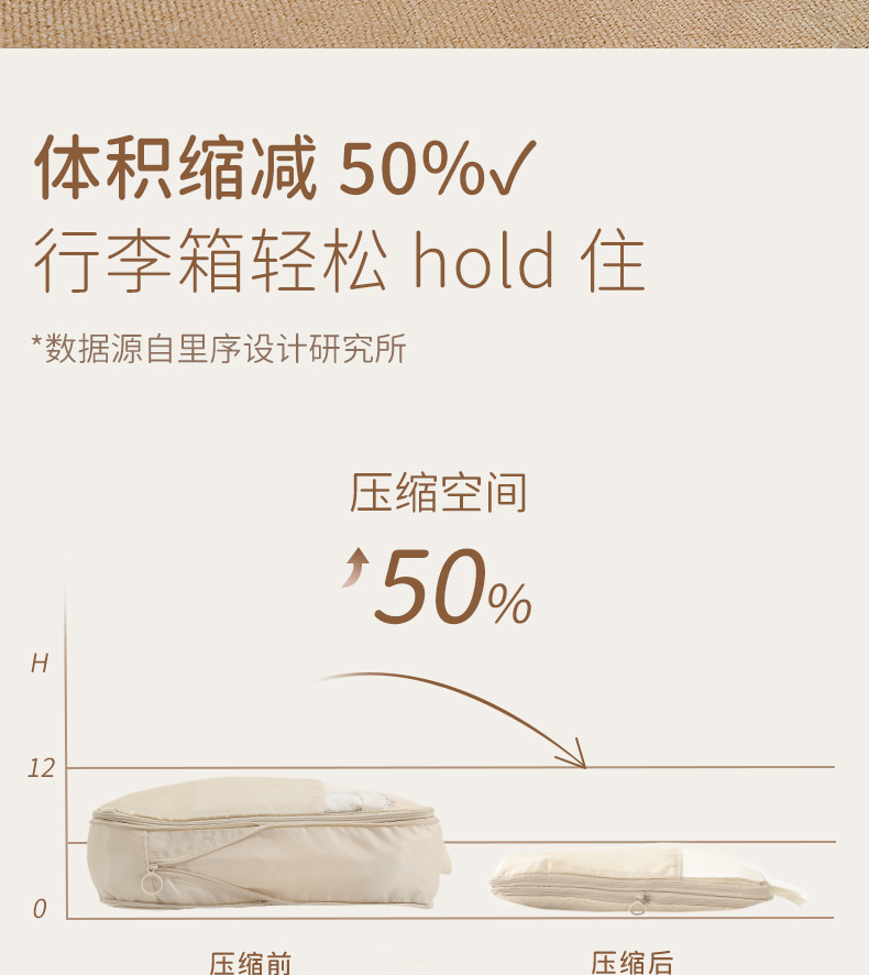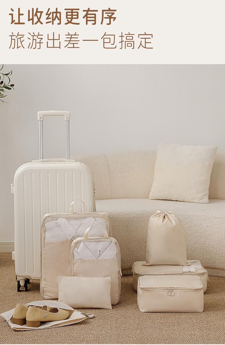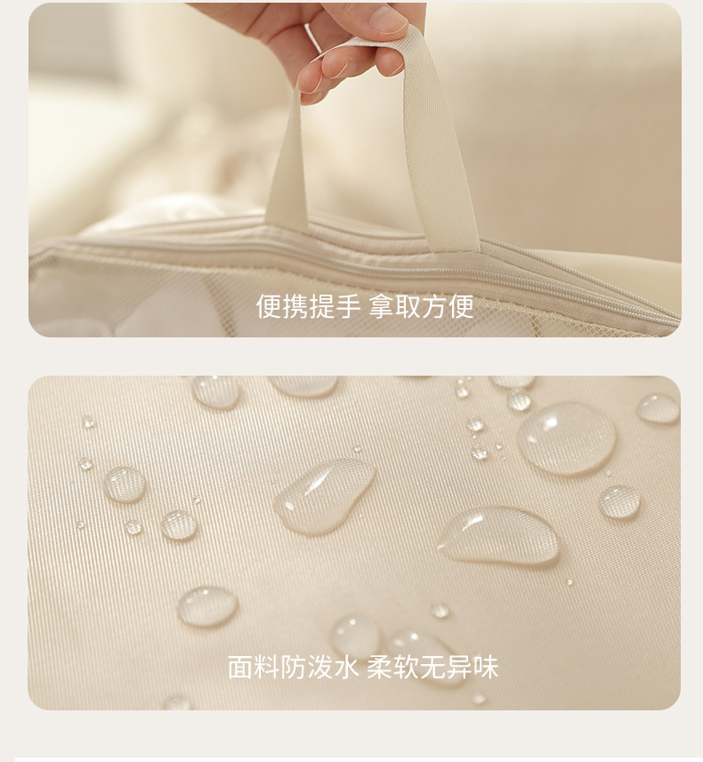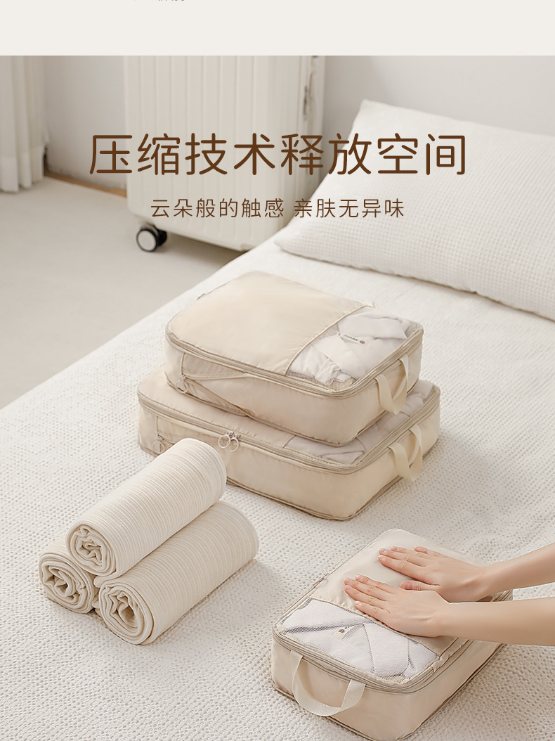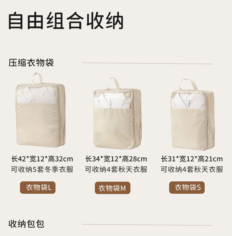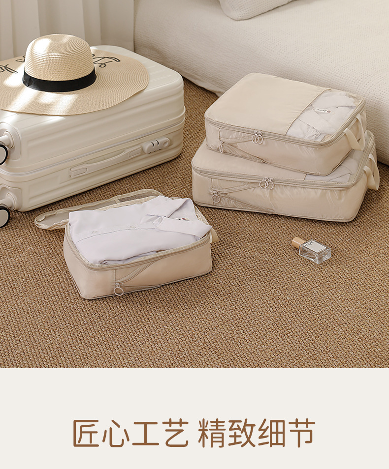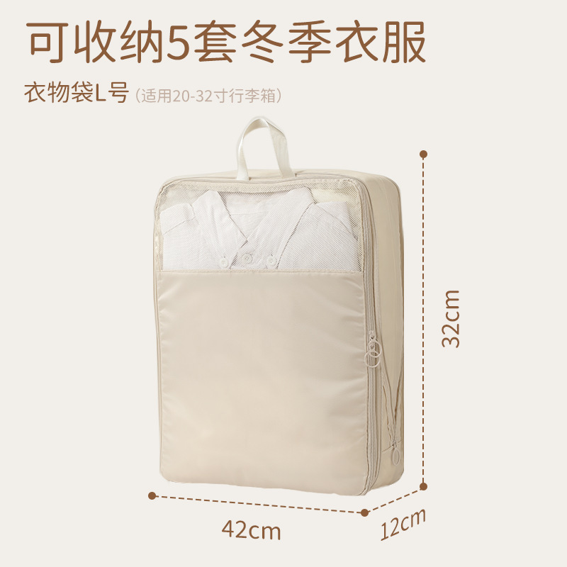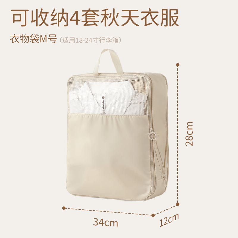 • 능직 압축 여행 가방 베이지 34*28*12cm 의류 가방 투명 창 (M 사이즈)