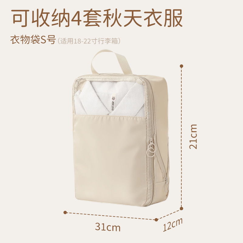 • 능직 압축 여행 가방 베이지 31*21*12cm 의류 가방 투시창(S 사이즈)