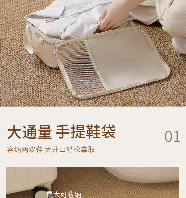 • 트윌압축여행가방 베이지 33.5*20*10cm (신발가방)
