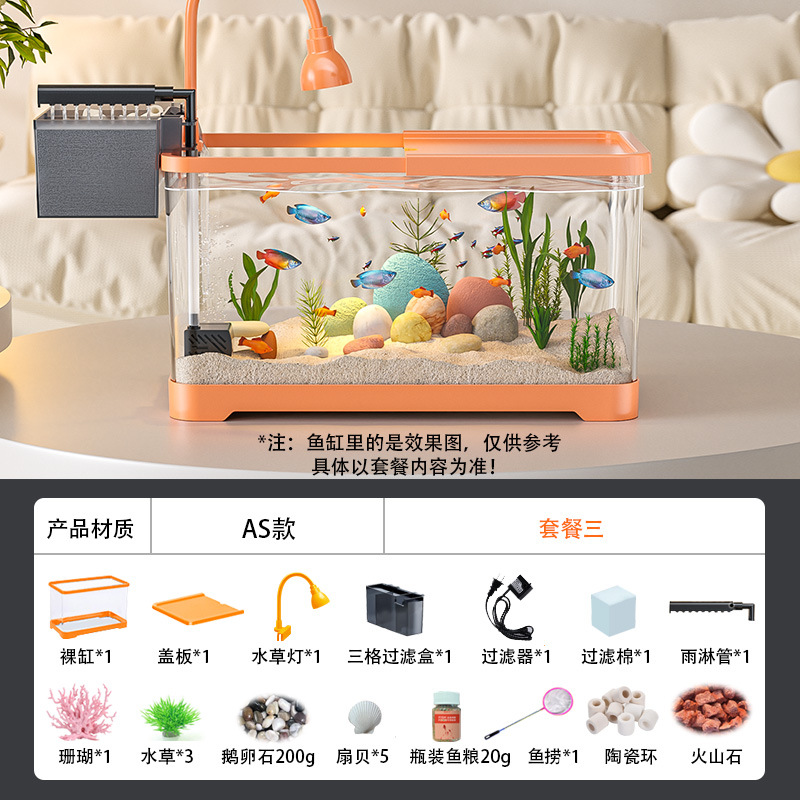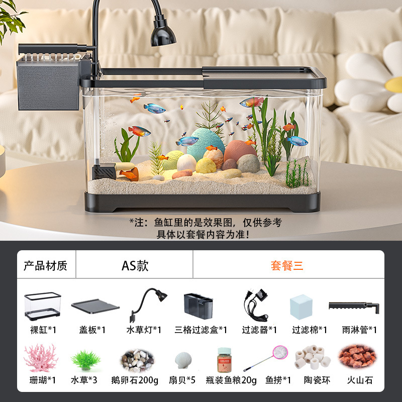 물고기 탱크 작은 거실 2025 새로운 필터 산소 발생기 통합 기계 뚜껑 포함 생태 조경 물 교체 없음 금붕어 탱크스토어 가기