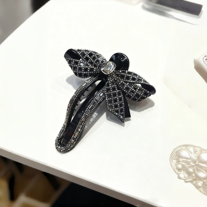 • 건메탈 다이아몬드 장식 나비 매듭 집게핀 11cm - 스프레이 PC 클립