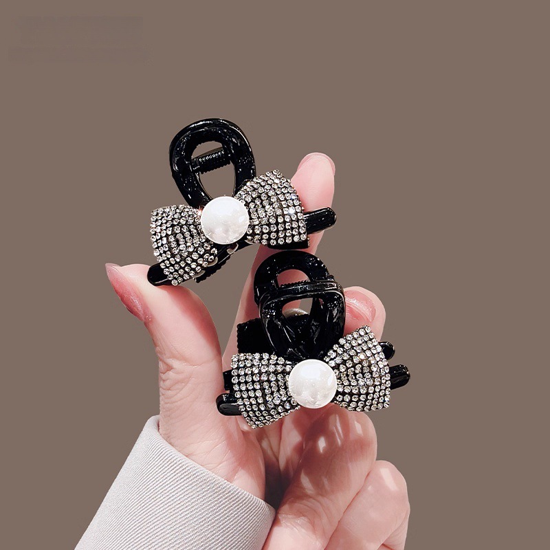 • 블랙 풀 다이아몬드 리본 집게핀 (한국산 벨벳 원단, 더욱 뛰어난 품질)