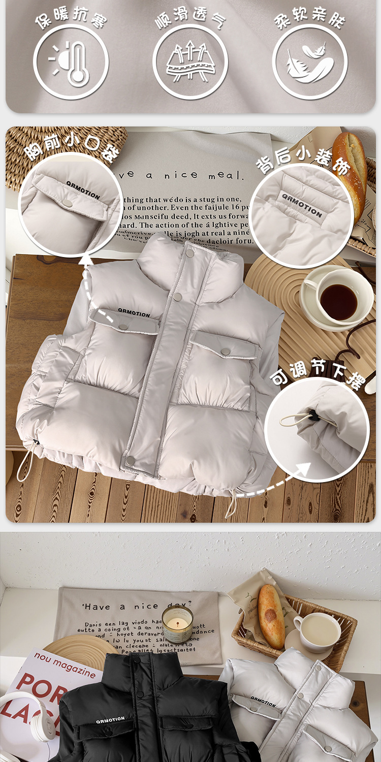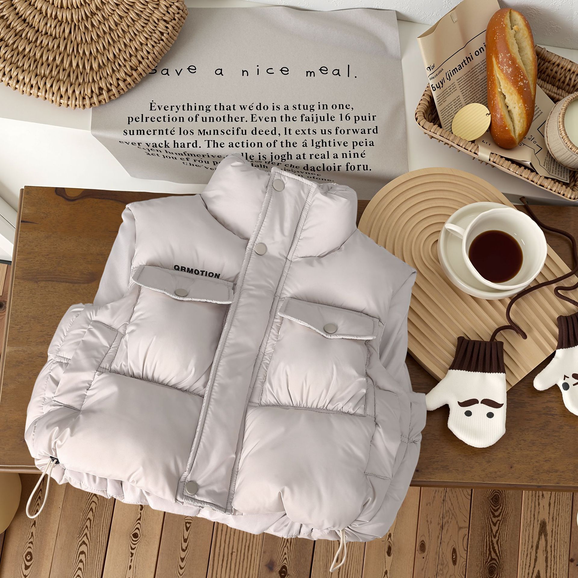 2025 새로운 가을, 겨울 복고풍 문학 아동 의류 면화 조끼 한국 스타일 소년과 소녀 겉옷 양복 조끼 유행 조끼