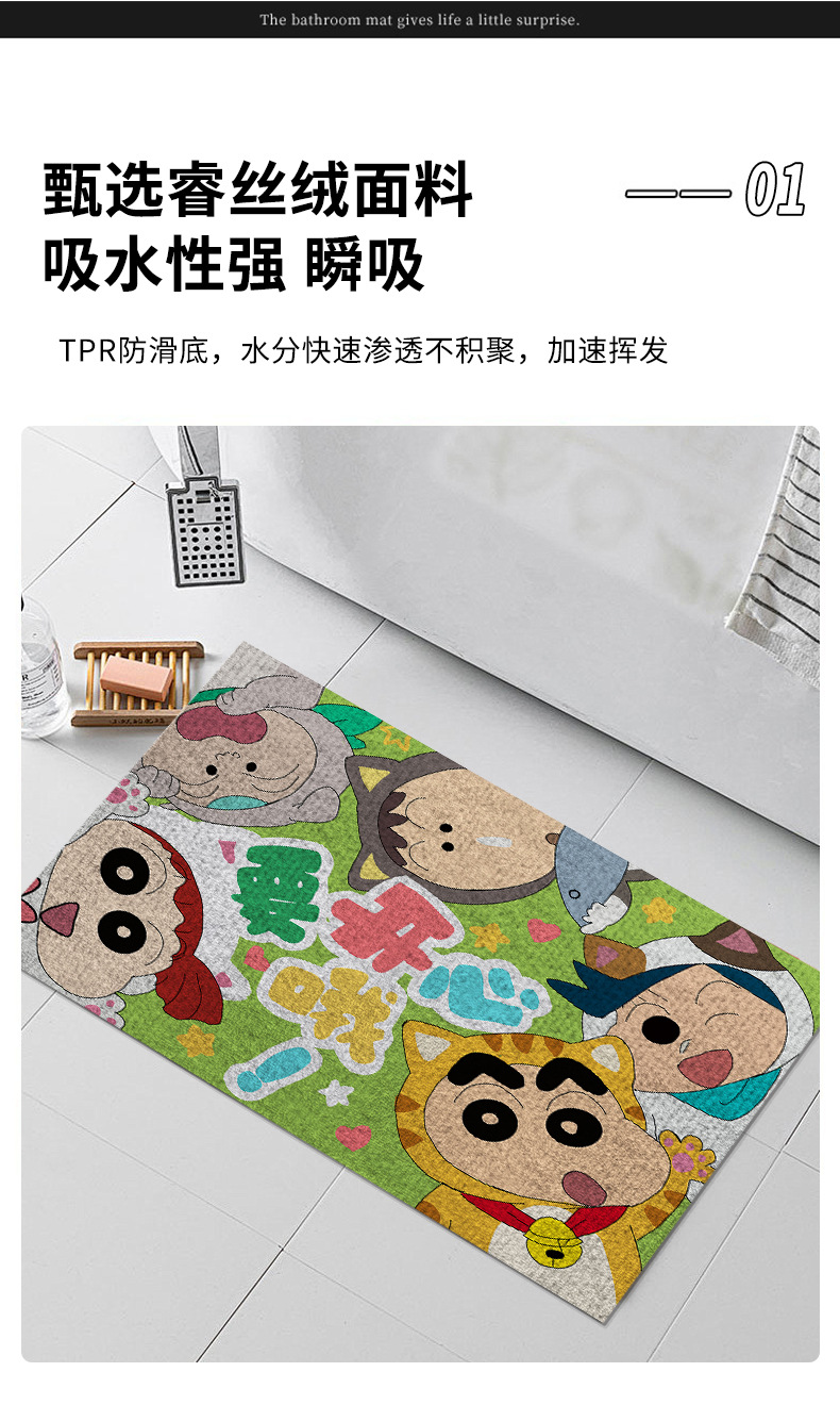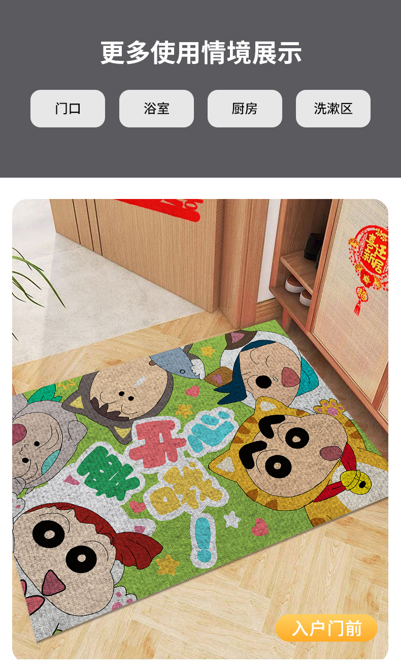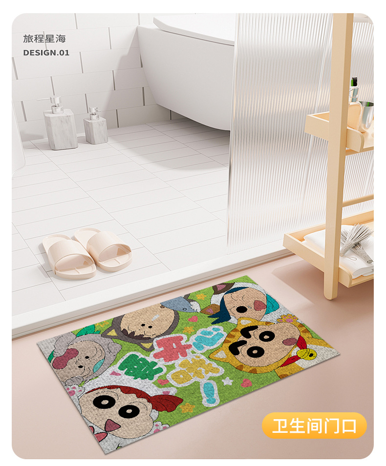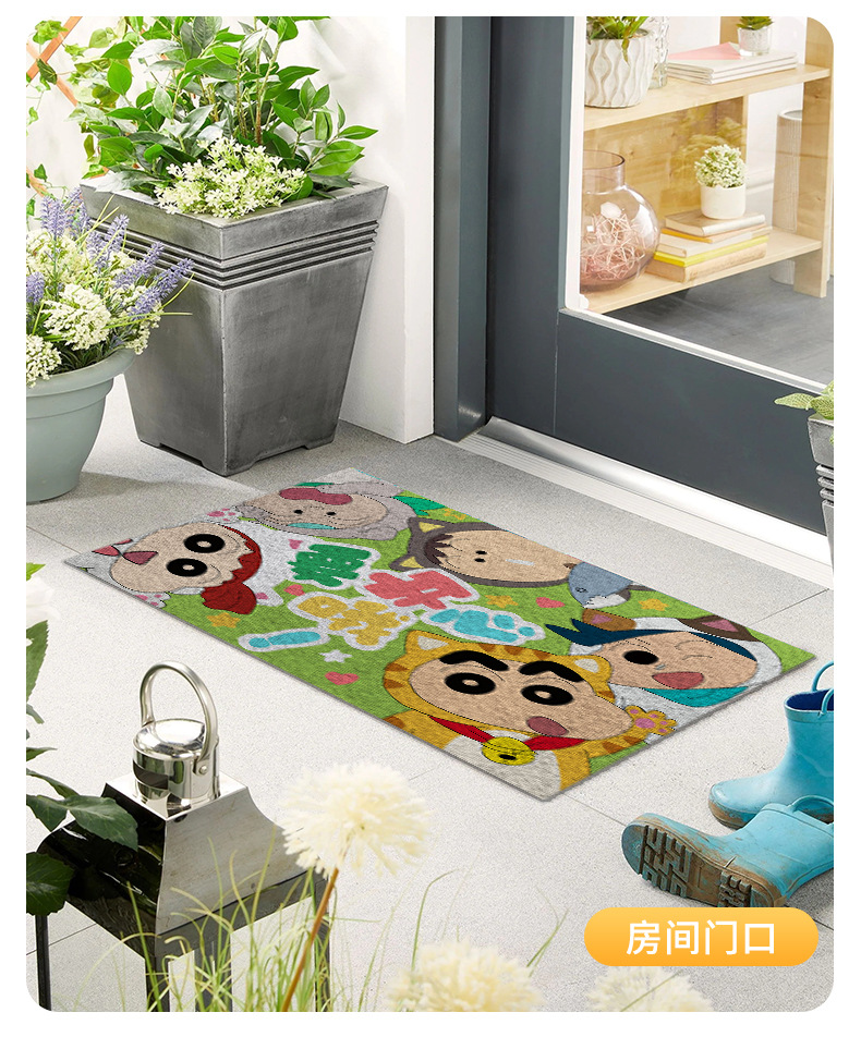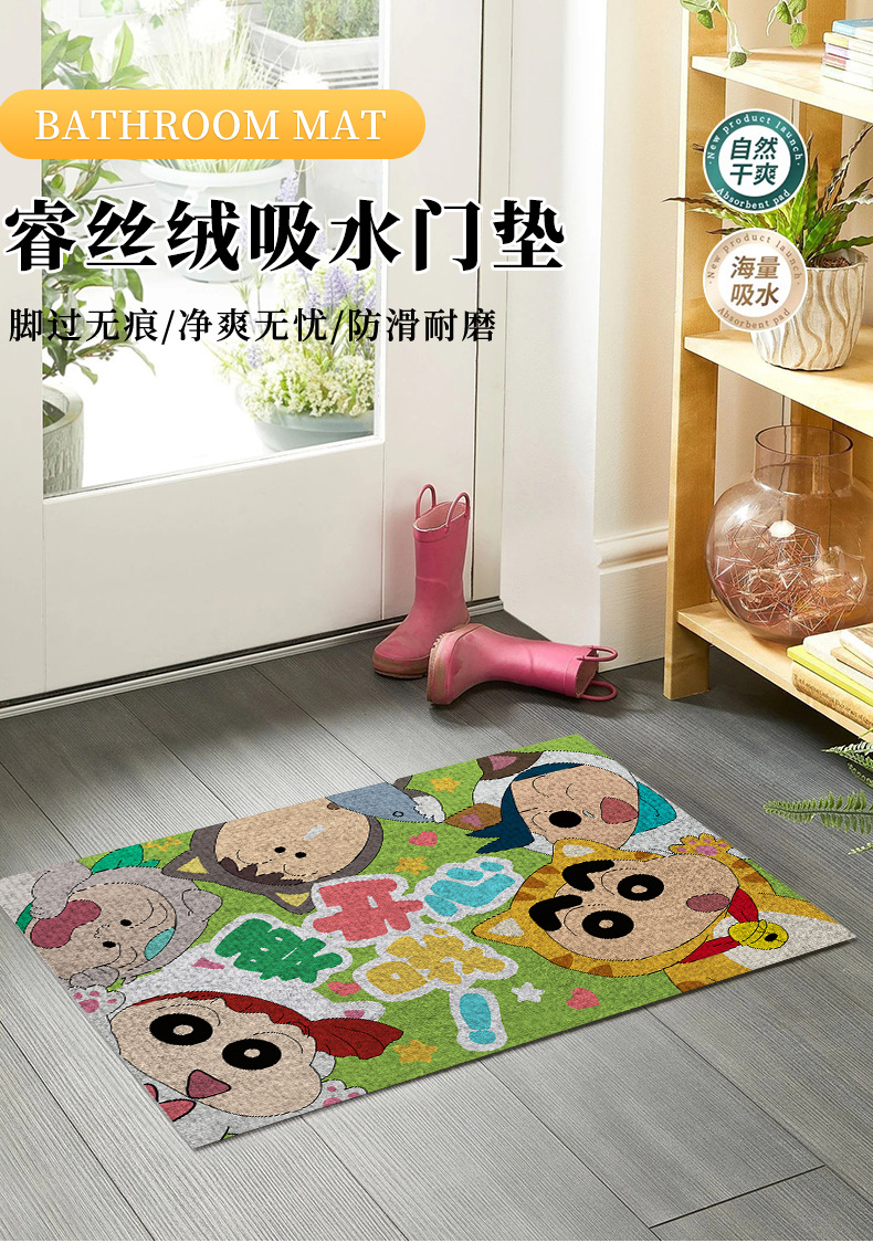 크레용신짱 현관문 바닥매트, 집 현관문, 얼룩 방지 발매트, 루이벨벳, 절단 및 관리가 용이한 현관매트