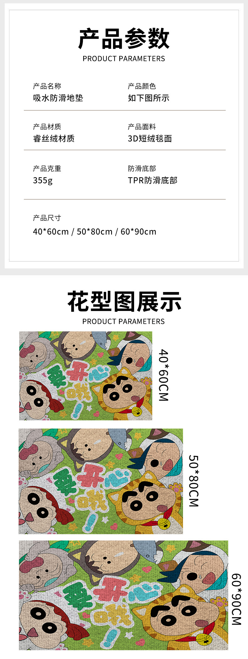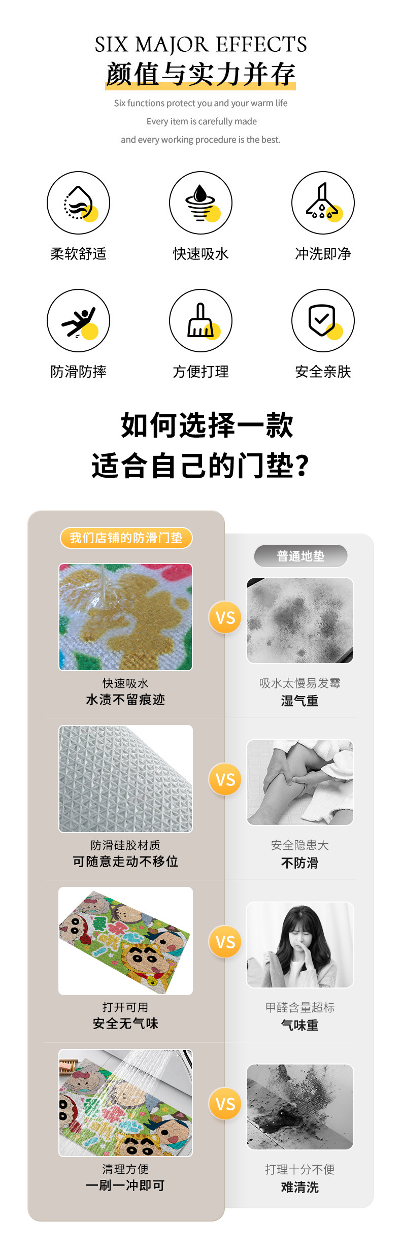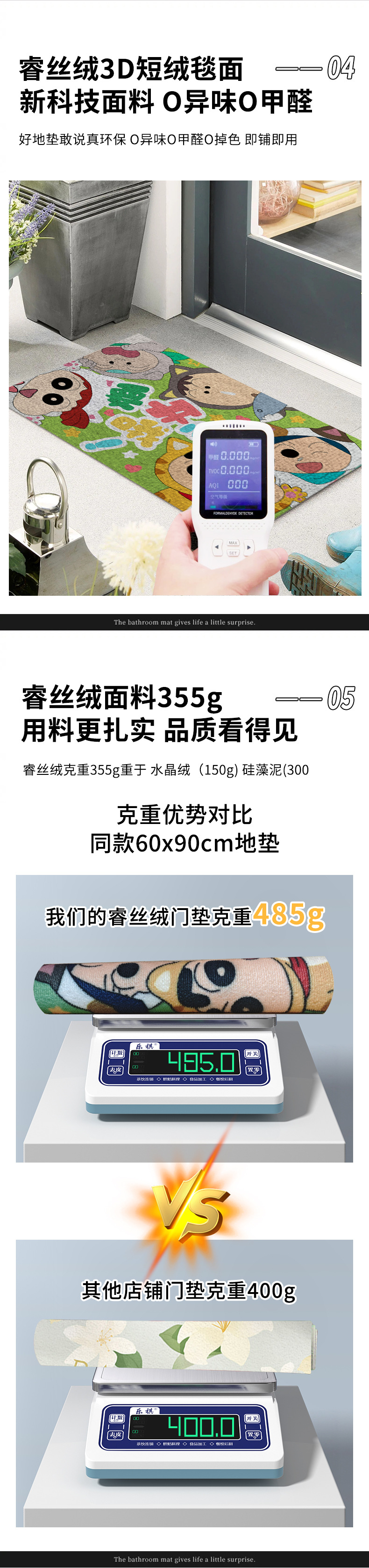 크레용신짱 현관문 바닥매트, 집 현관문, 얼룩 방지 발매트, 루이벨벳, 절단 및 관리가 용이한 현관매트