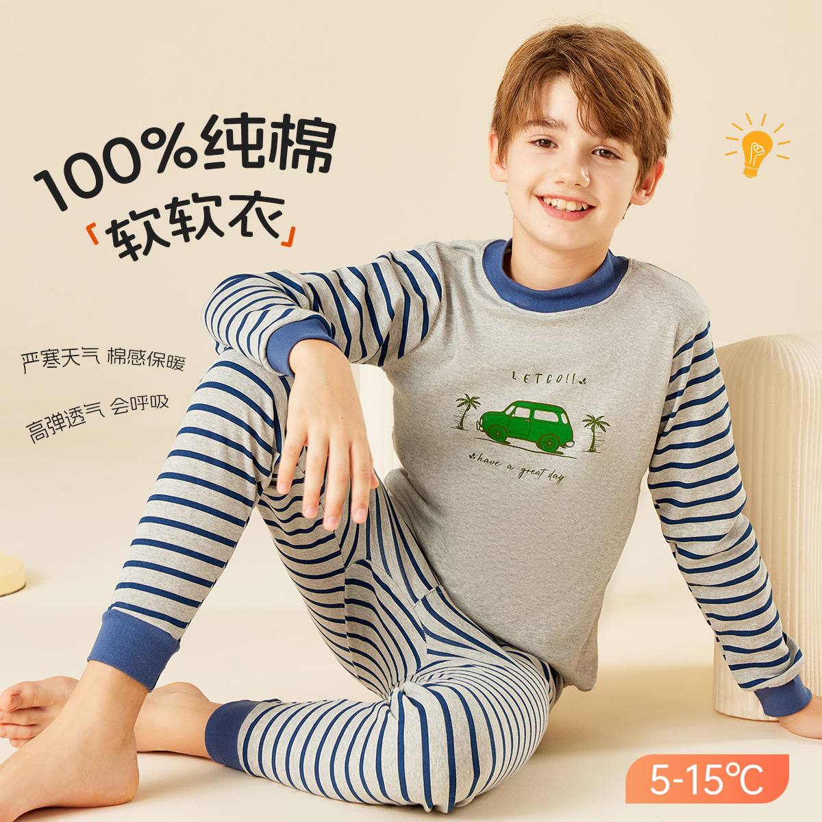 아동복, 아동복, 잠옷 세트, 봄, 가을 중간 칼라 긴팔 셔츠 세트(남아 및 여아용), 맞춤형 가공스토어 가기