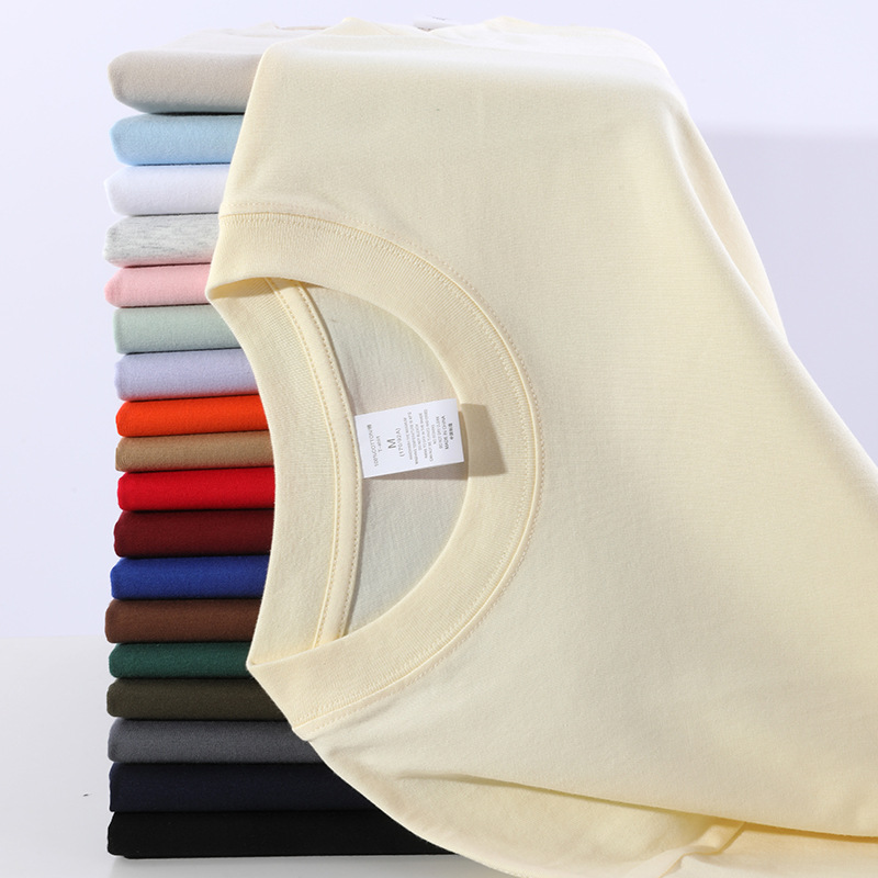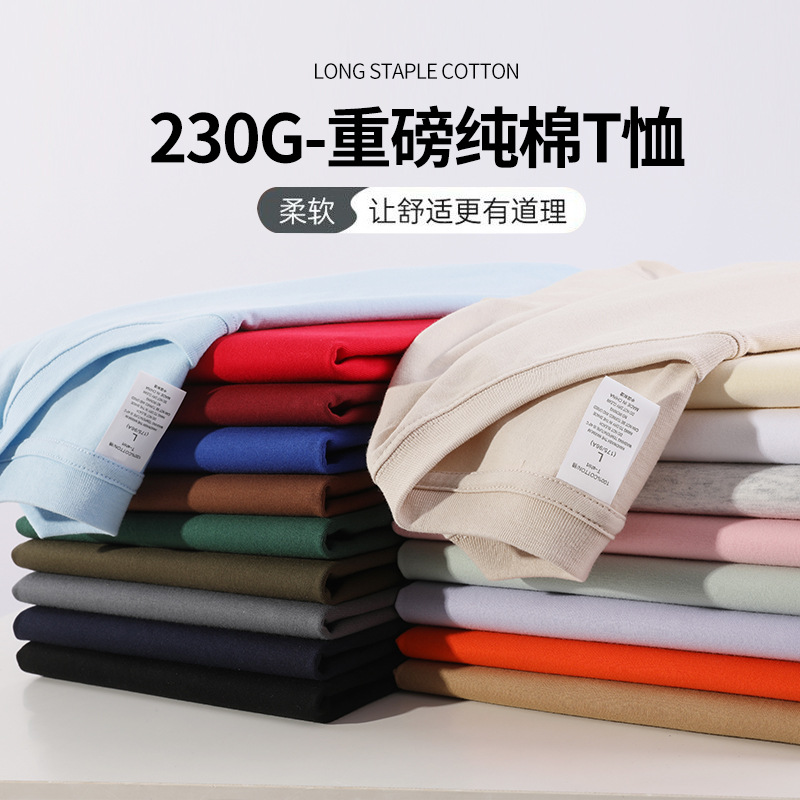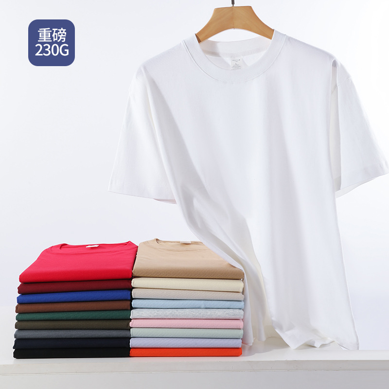 헤비급 230g 순면 티셔츠 재고 있음 도매 남성용 반팔 라운드 넥 오프 숄더 문화 셔츠 솔리드 컬러 반팔 남성용 티셔츠