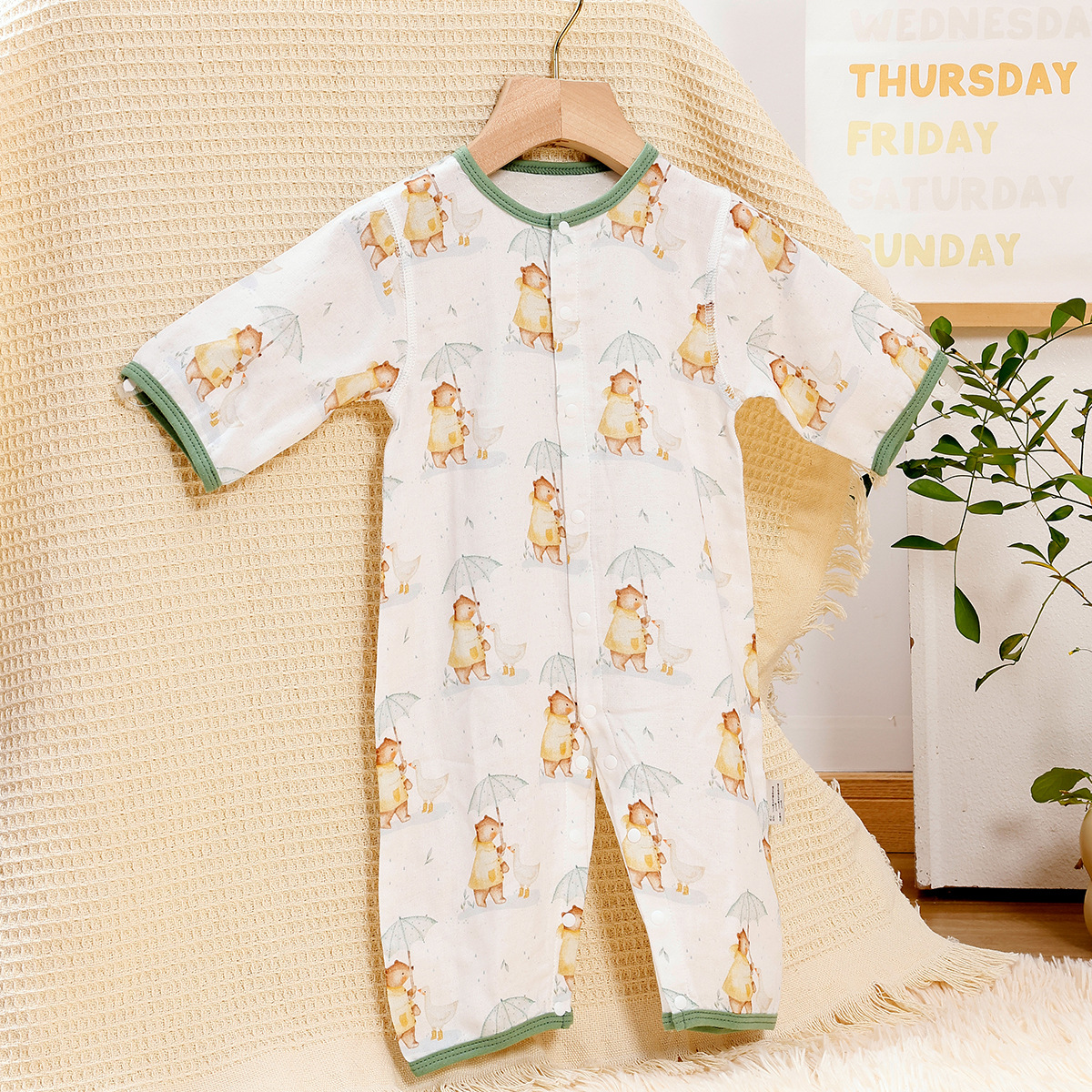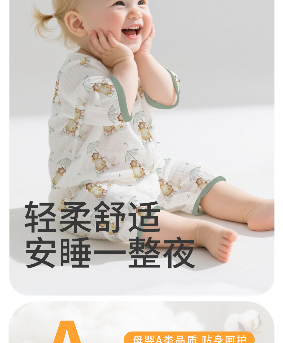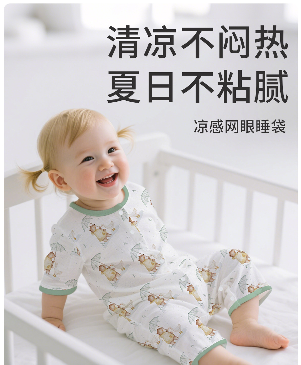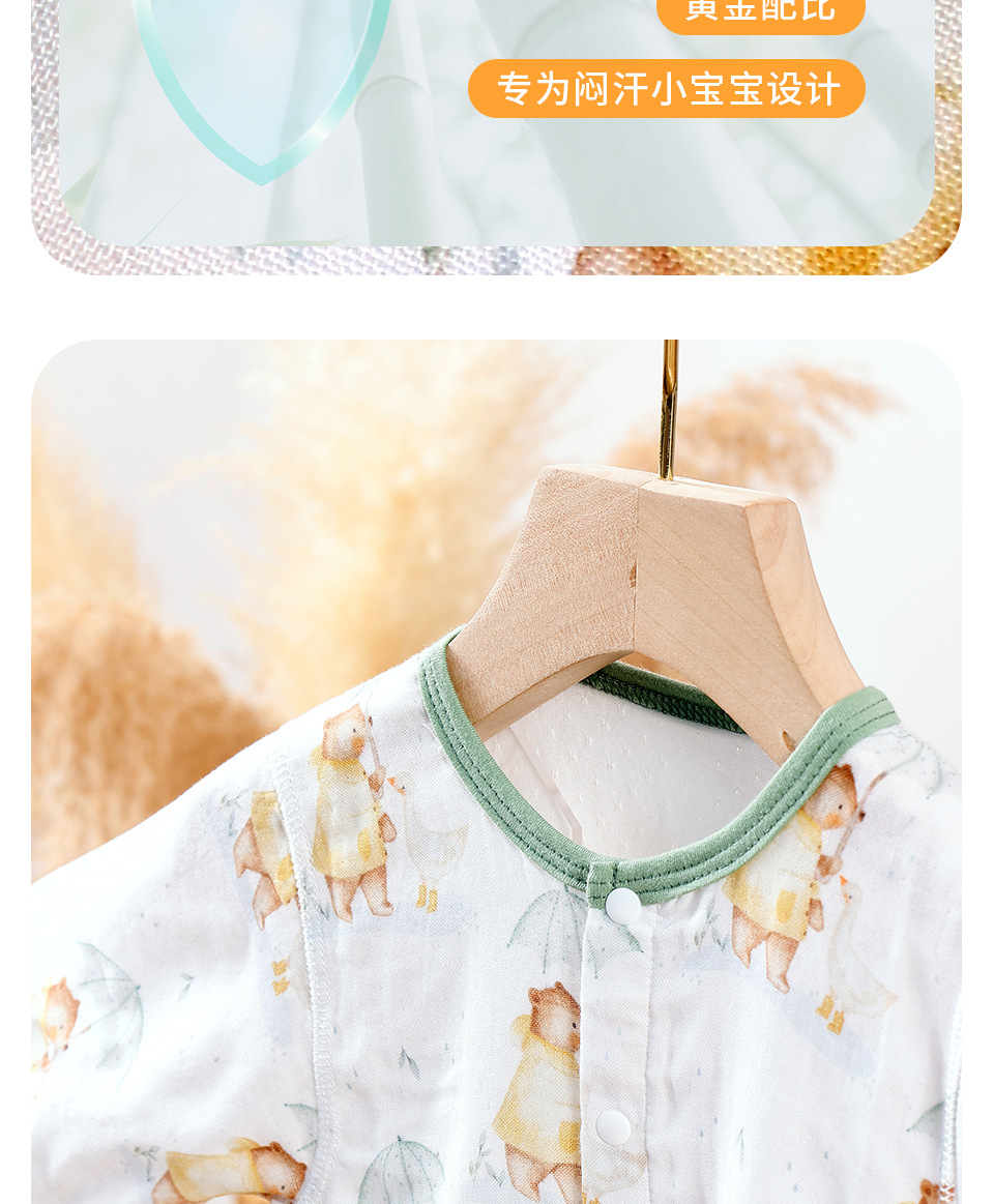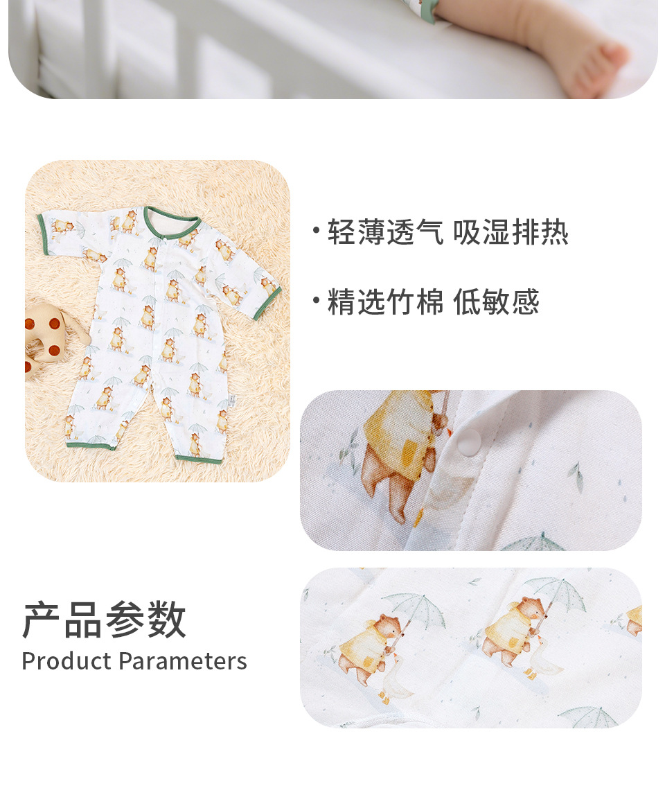 아기 침낭 여름 대나무 면 거즈 일체형 침낭 가정복 에어컨 룸 반팔 경량 분할 다리 침낭스토어 가기