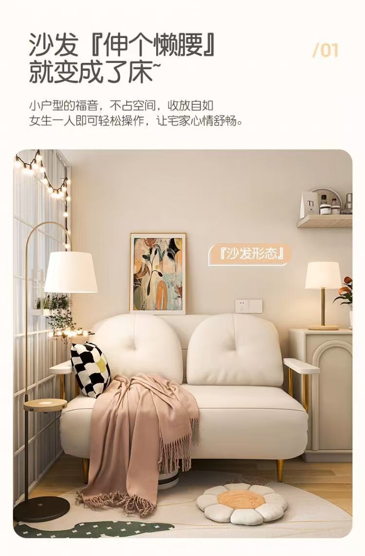 접이식 소파 침대 싱글 더블 작은 아파트 크림 스타일 간단한 클라우드 소파 발코니 거실 접이식 소파 침대스토어 가기