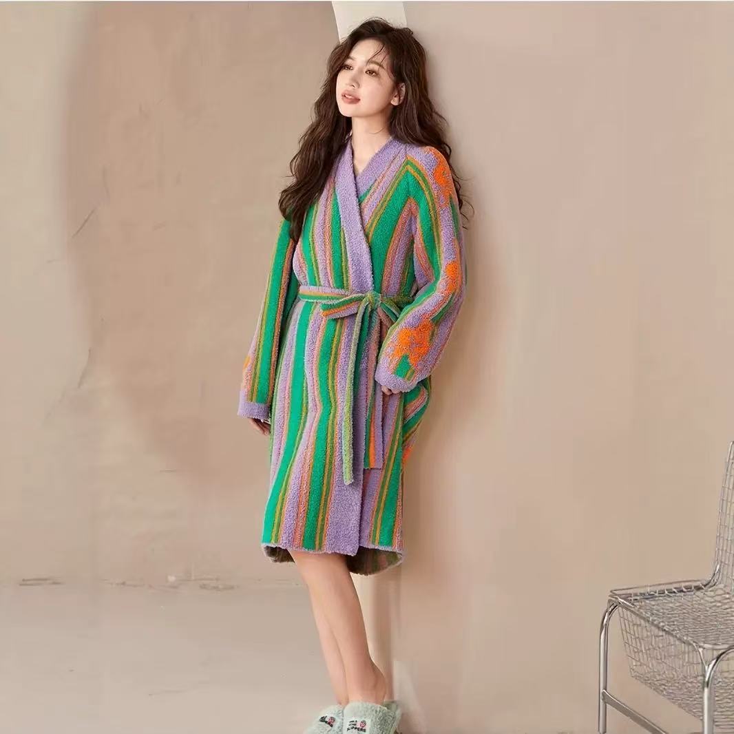 하프 벨벳 컬러 매칭 섹시한 여성용 잠옷 두꺼운 겨울 긴팔 홈 목욕 가운 캐주얼 루즈 게으른 홈웨어